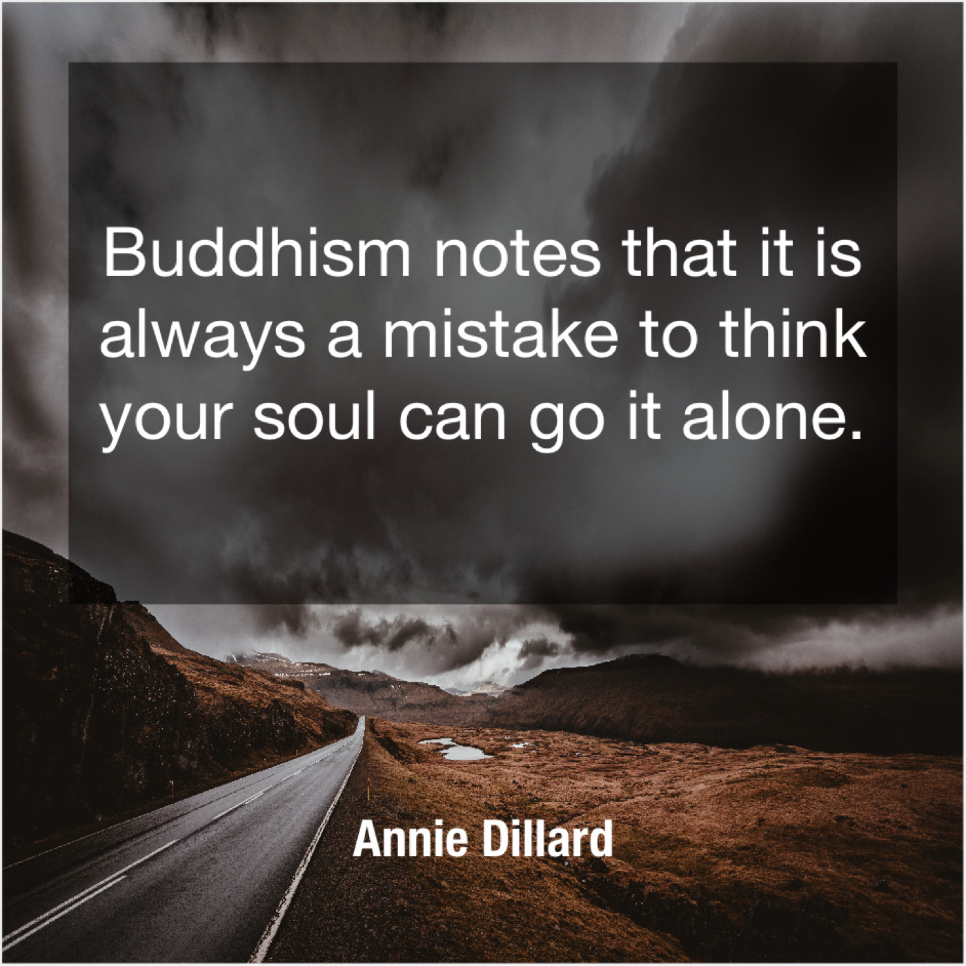 Annie Dillard Annie Dillard – Buddhism notes that it is… June 4, 2019 admin “Buddhism notes that it is always a mistake to think your soul can go it alone.”-Annie Dillard