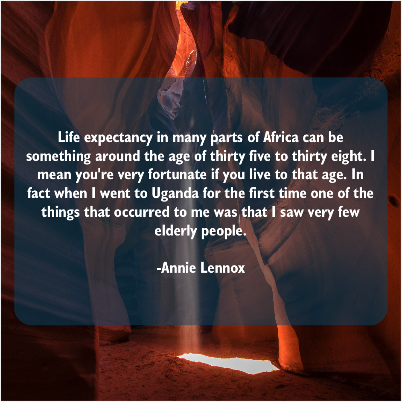 “Life expectancy in many parts of Africa can be something around the age of thirty five to thirty eight. I mean you’re very fortunate if you live to that age. In fact when I went to Uganda for the first time one of the things that occurred to me was that I saw very few elderly people.”