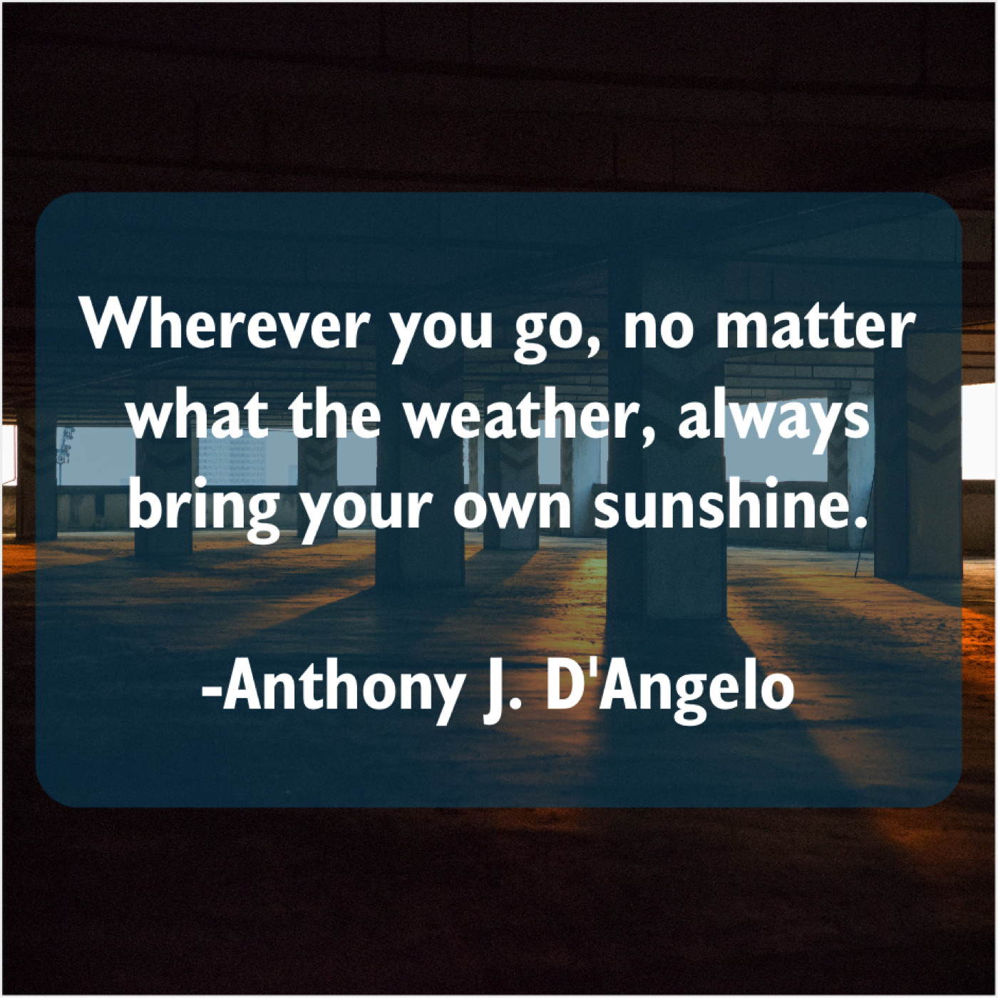 Anthony J. D'Angelo Anthony J. D’Angelo – Wherever you go, no matter… May 16, 2019 admin “Wherever you go, no matter what the weather, always bring your own sunshine.”-Anthony J. D’Angelo