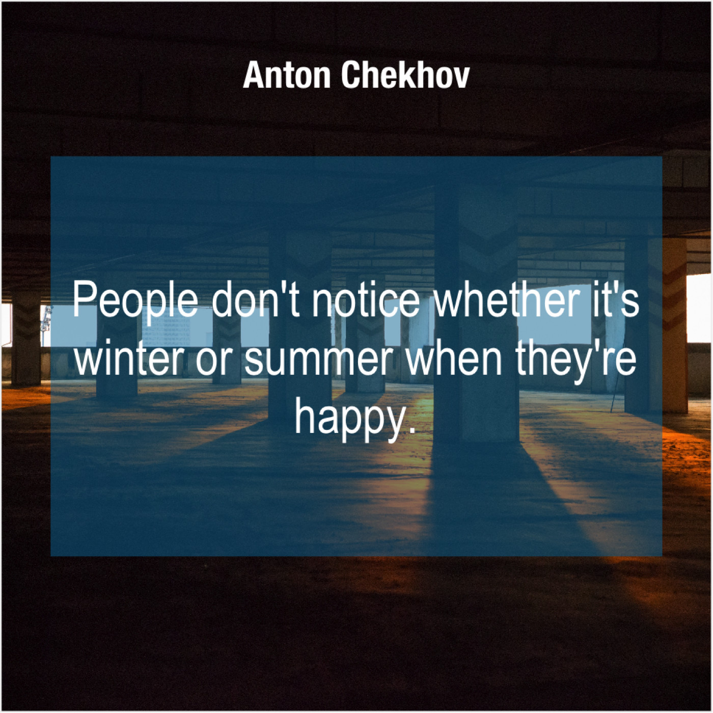 Anton Chekhov Anton Chekhov – People don’t notice whether it’s… April 9, 2019 admin “People don’t notice whether it’s winter or summer when they’re happy.”-Anton Chekhov