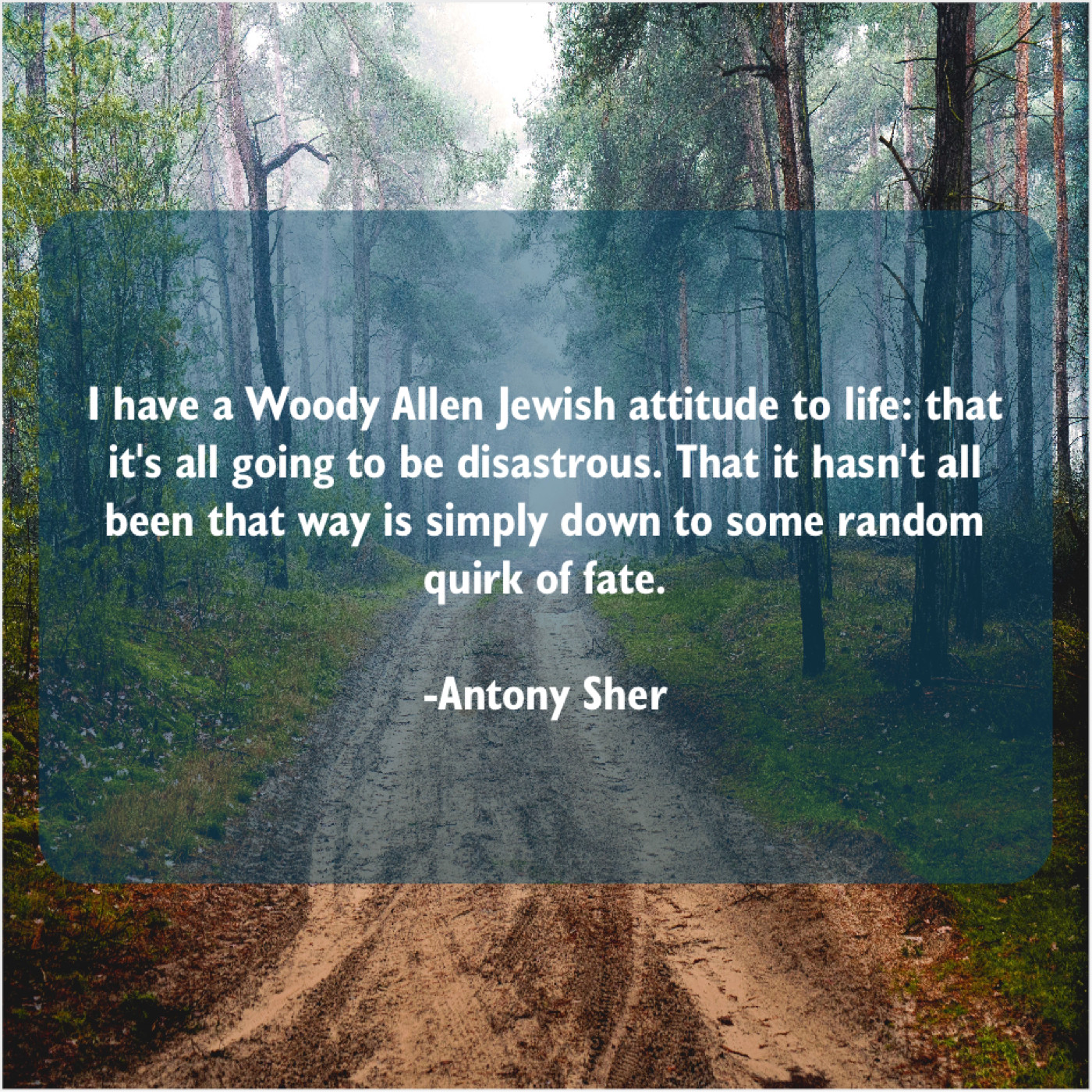 Antony Sher Antony Sher – I have a Woody Allen… August 13, 2019 admin “I have a Woody Allen Jewish attitude to life: that it’s all going to be disastrous. That it hasn’t all been that way is simply down to some random quirk of fate.”-Antony Sher