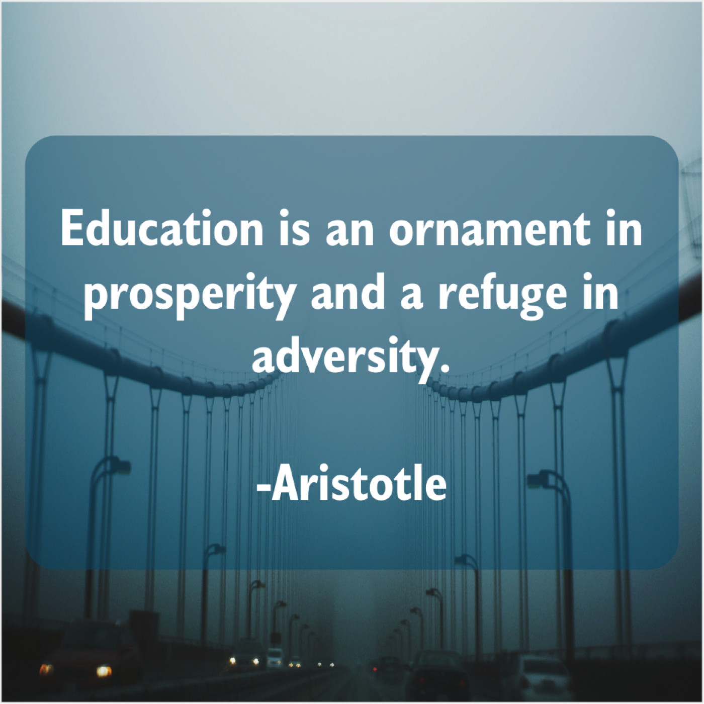Aristotle Aristotle – Education is an ornament in… September 11, 2019 admin “Education is an ornament in prosperity and a refuge in adversity.”-Aristotle