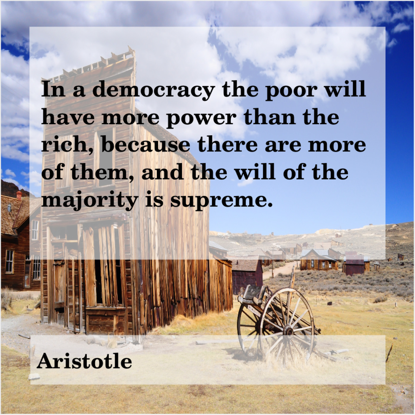 Aristotle Aristotle – In a democracy the poor… April 23, 2019 admin “In a democracy the poor will have more power than the rich, because there are more of them, and the will of the majority is supreme.”-Aristotle