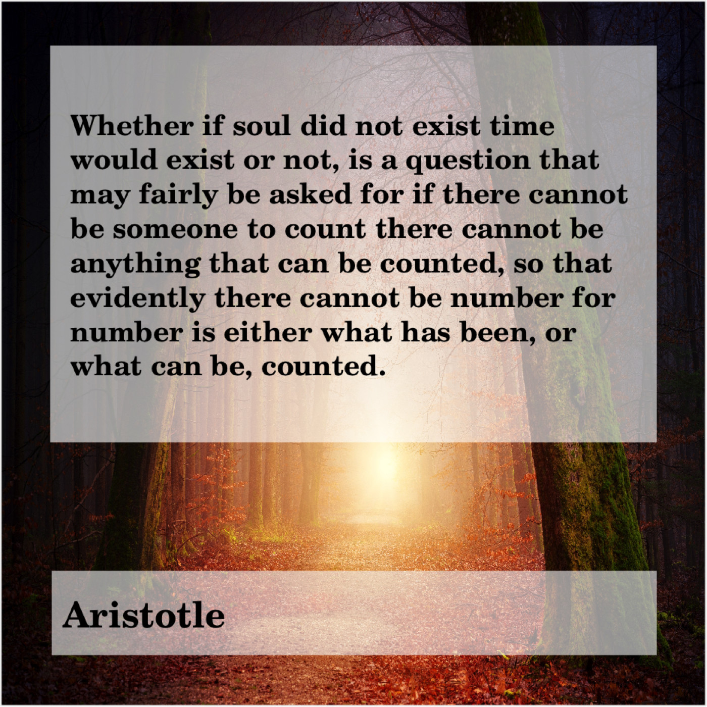 “Whether if soul did not exist time would exist or not, is a question that may fairly be asked for if there cannot be someone to count there cannot be anything that can be counted, so that evidently there cannot be number for number is either what has been, or what can be, counted.”