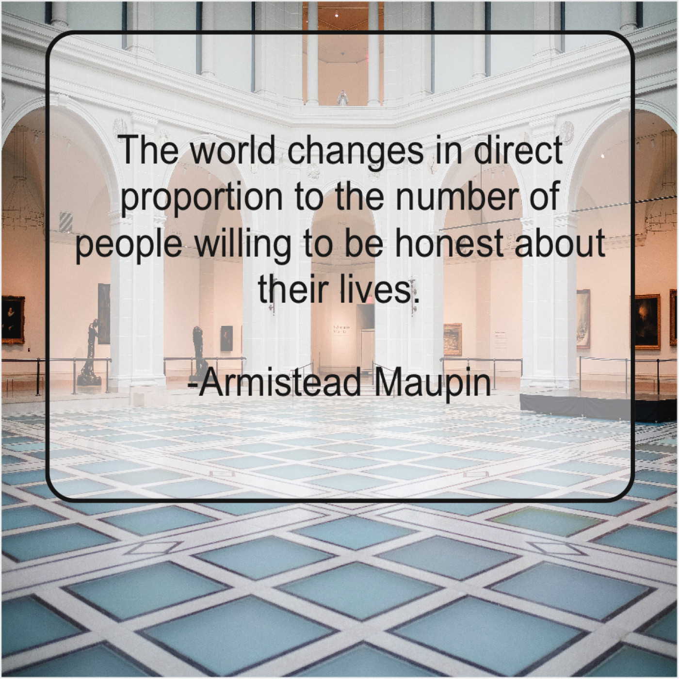 Armistead Maupin Armistead Maupin – The world changes in direct… August 9, 2019 admin “The world changes in direct proportion to the number of people willing to be honest about their lives.”-Armistead Maupin