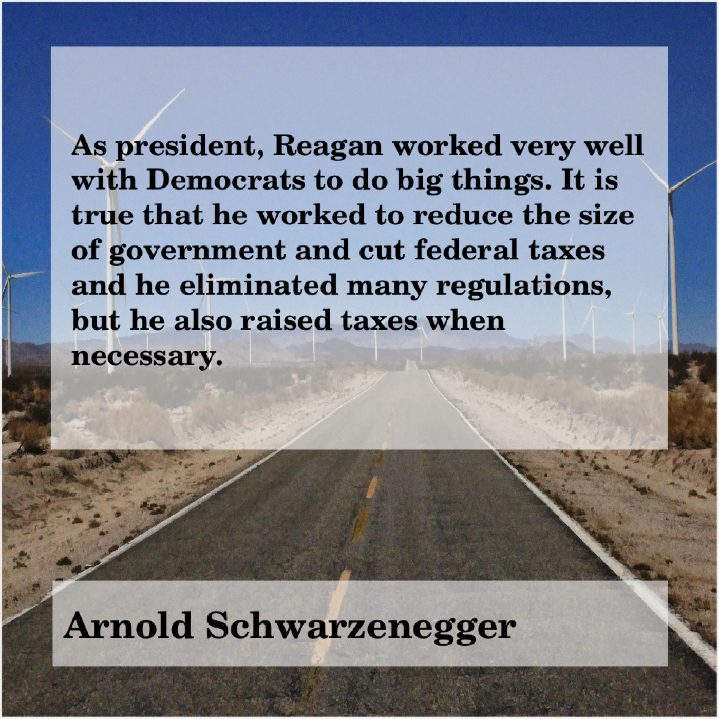 “As president, Reagan worked very well with Democrats to do big things. It is true that he worked to reduce the size of government and cut federal taxes and he eliminated many regulations, but he also raised taxes when necessary.”