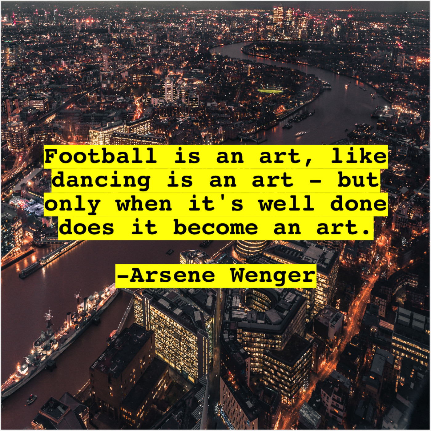 Arsene Wenger Arsene Wenger – Football is an art, like… March 24, 2019 admin “Football is an art, like dancing is an art – but only when it’s well done does it become an art.”-Arsene Wenger