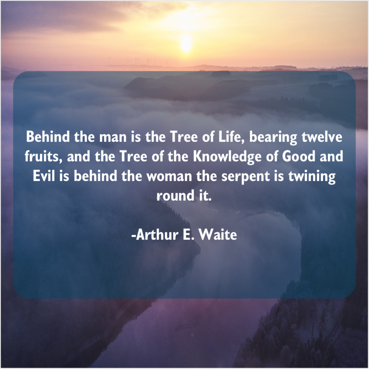 Arthur E. Waite Arthur E. Waite – Behind the man is the… September 7, 2019 admin “Behind the man is the Tree of Life, bearing twelve fruits, and the Tree of the Knowledge of Good and Evil is behind the woman the serpent is twining round it.”-Arthur E. Waite