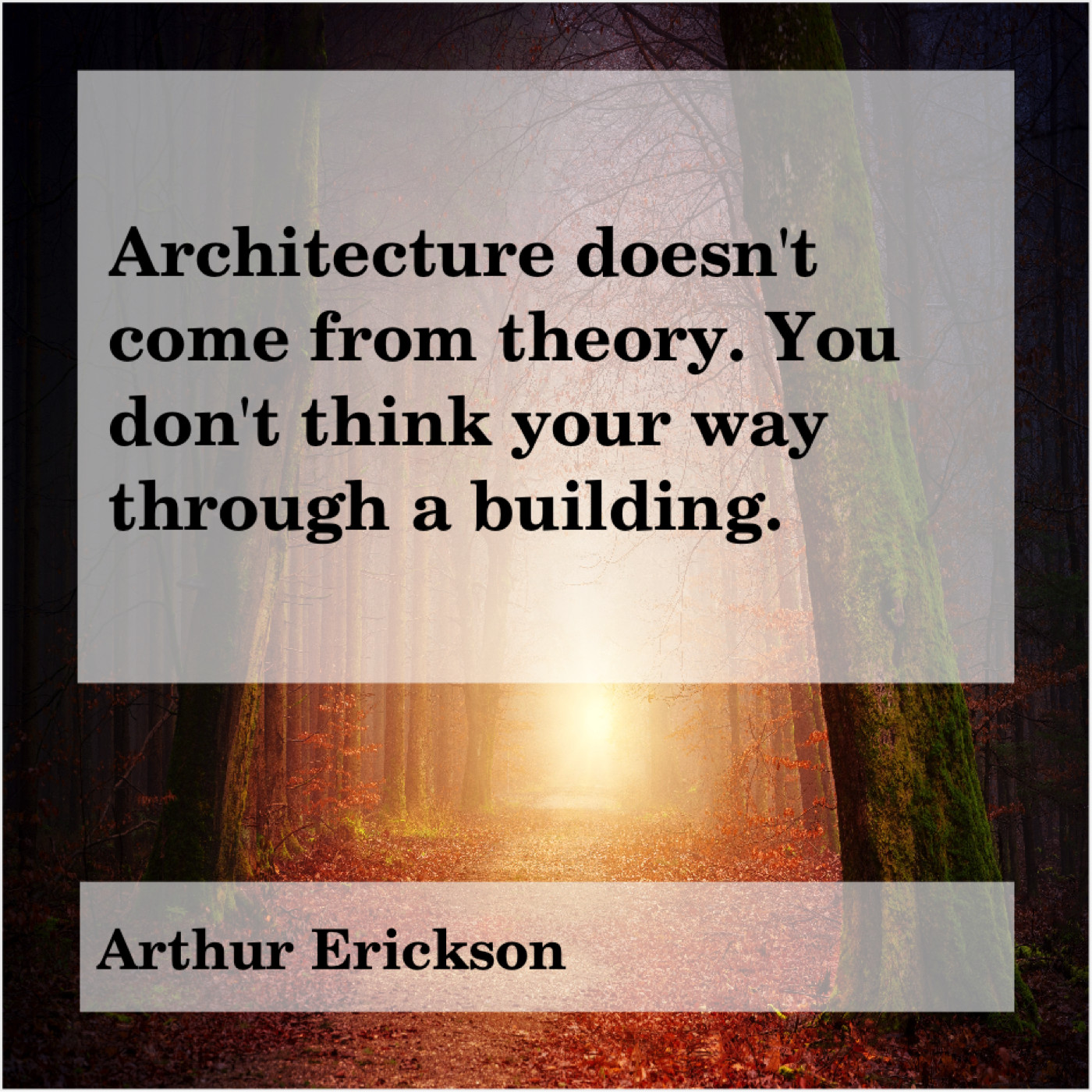 Arthur Erickson Arthur Erickson – Architecture doesn’t come from theory… March 31, 2019 admin “Architecture doesn’t come from theory. You don’t think your way through a building.”-Arthur Erickson