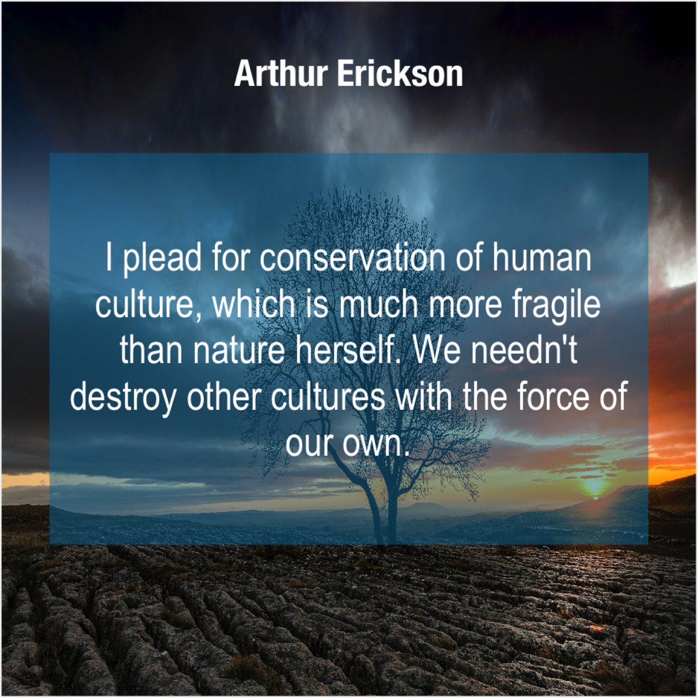 Arthur Erickson Arthur Erickson – I plead for conservation of… September 3, 2019 admin “I plead for conservation of human culture, which is much more fragile than nature herself. We needn’t destroy other cultures with the force of our own.”-Arthur Erickson