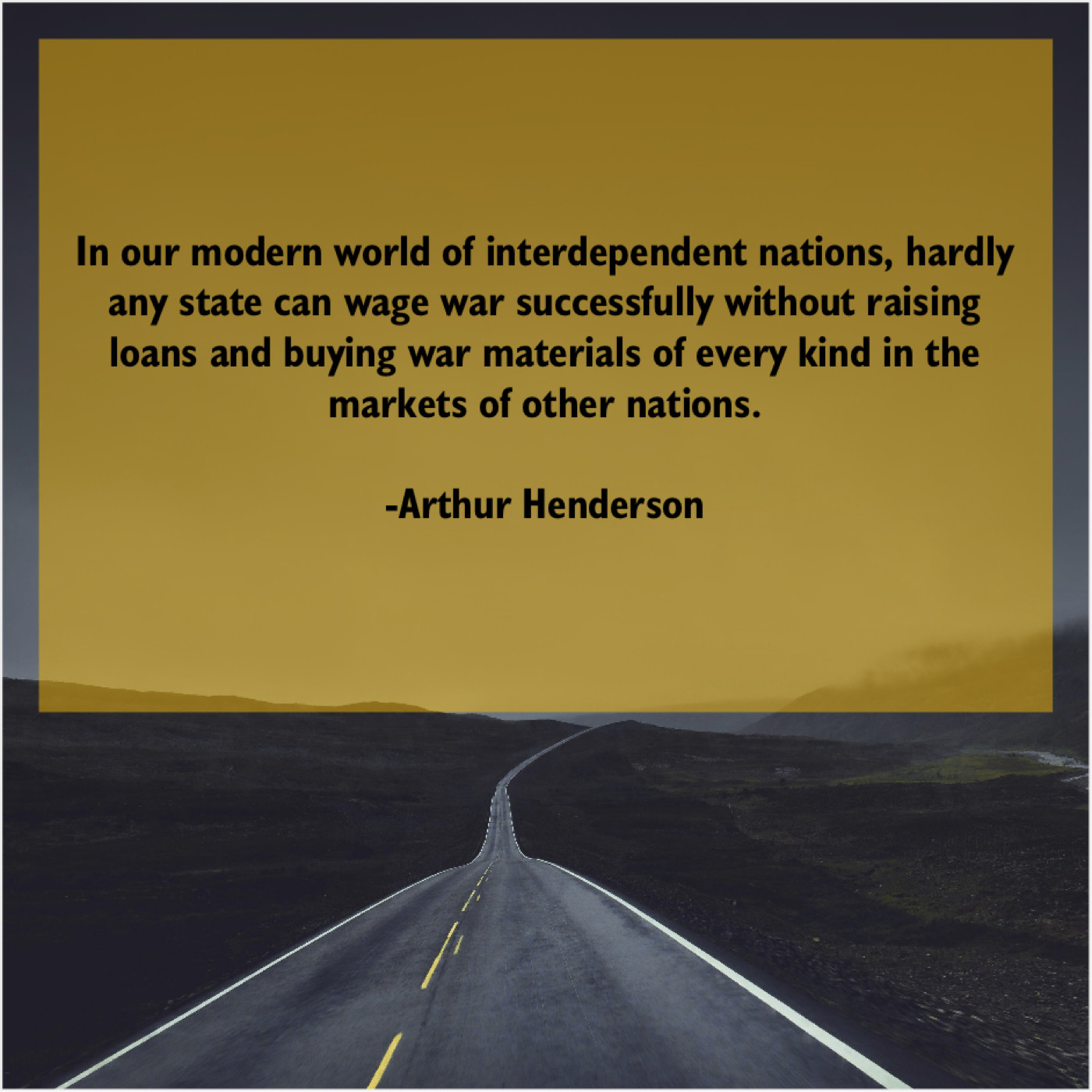 Arthur Henderson Arthur Henderson – In our modern world of… June 3, 2019 admin “In our modern world of interdependent nations, hardly any state can wage war successfully without raising loans and buying war materials of every kind in the markets of other nations.”-Arthur Henderson