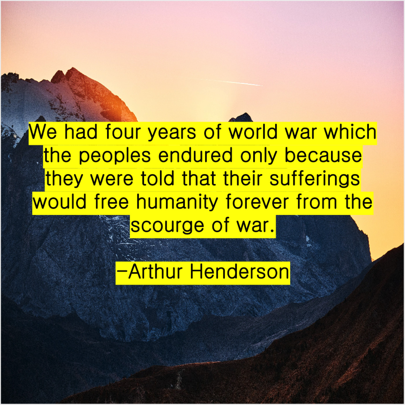 Arthur Henderson Arthur Henderson – We had four years of… August 18, 2019 admin “We had four years of world war which the peoples endured only because they were told that their sufferings would free humanity forever from the scourge of war.”-Arthur Henderson