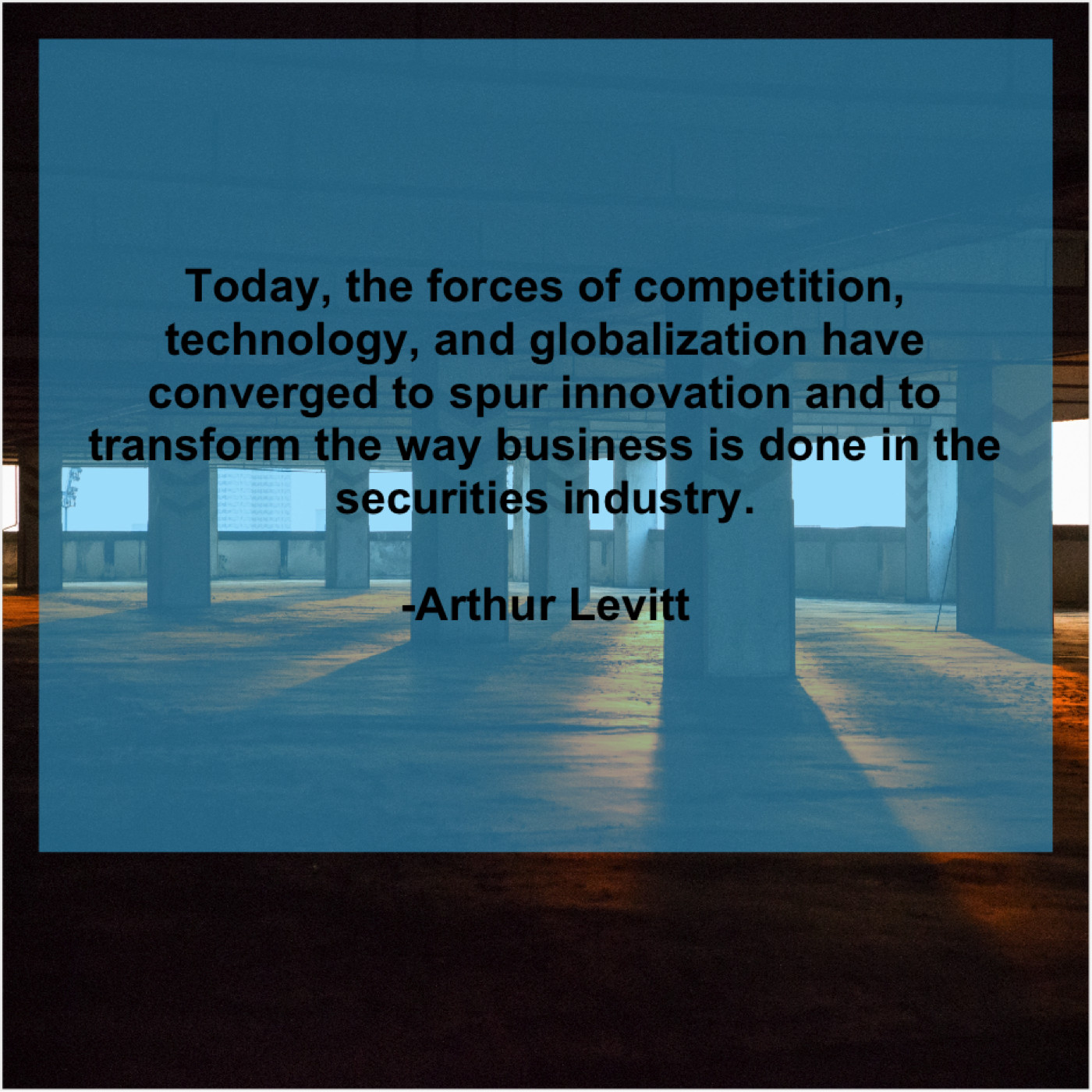 Arthur Levitt Arthur Levitt – Today, the forces of competition… February 12, 2019 admin “Today, the forces of competition, technology, and globalization have converged to spur innovation and to transform the way business is done in the securities industry.”-Arthur Levitt