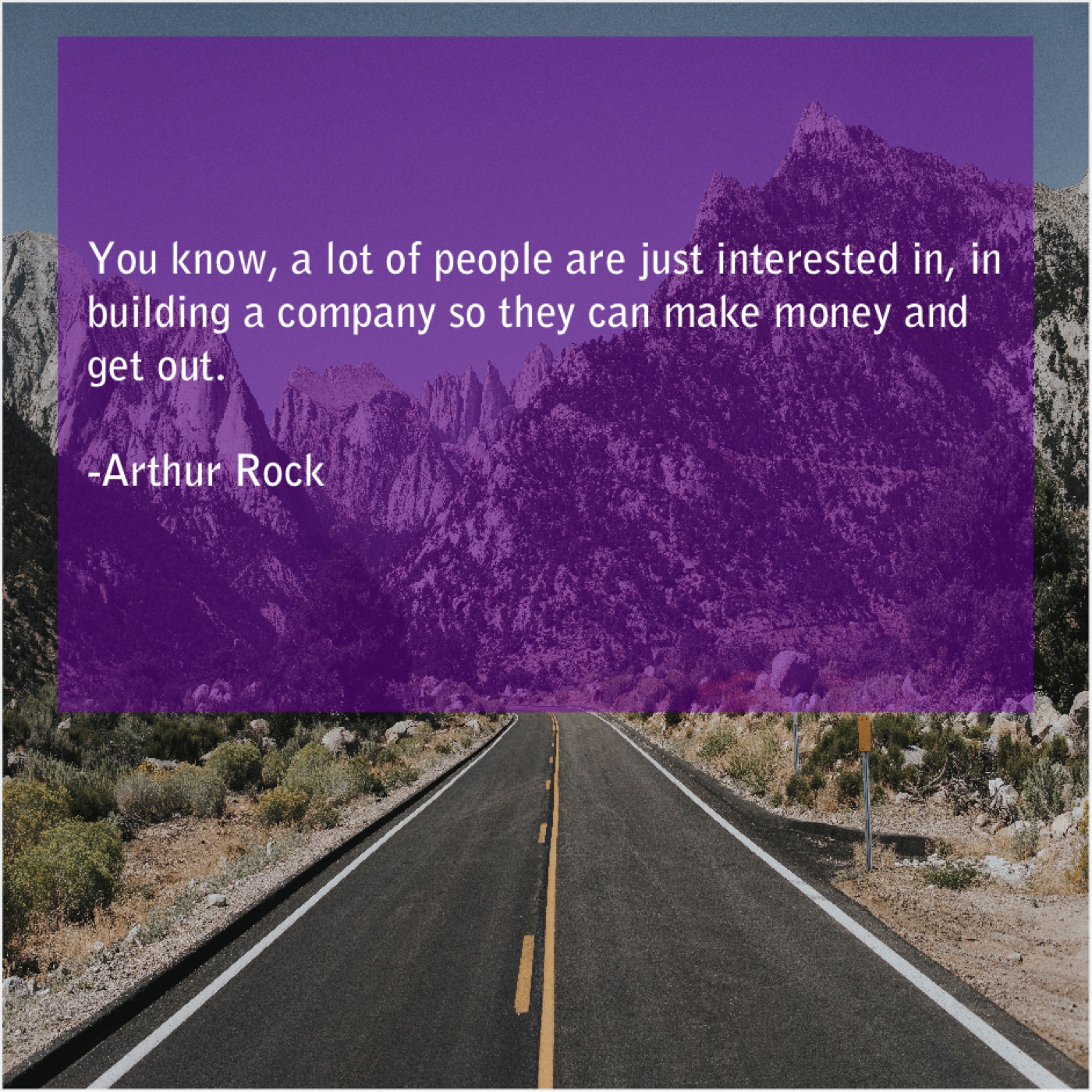 Arthur Rock Arthur Rock – You know, a lot of… February 25, 2019 admin “You know, a lot of people are just interested in, in building a company so they can make money and get out.”-Arthur Rock