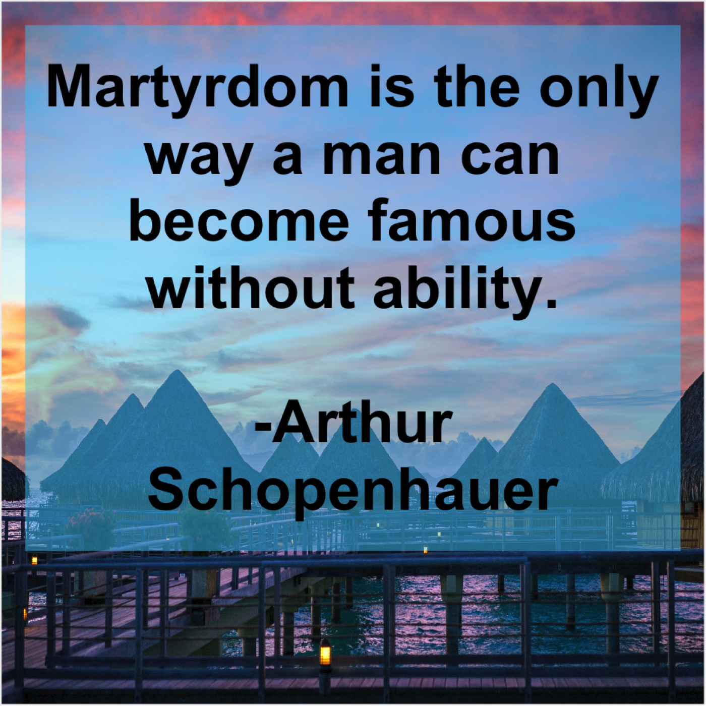 Arthur Schopenhauer Arthur Schopenhauer – Martyrdom is the only way… August 25, 2019 admin “Martyrdom is the only way a man can become famous without ability.”-Arthur Schopenhauer