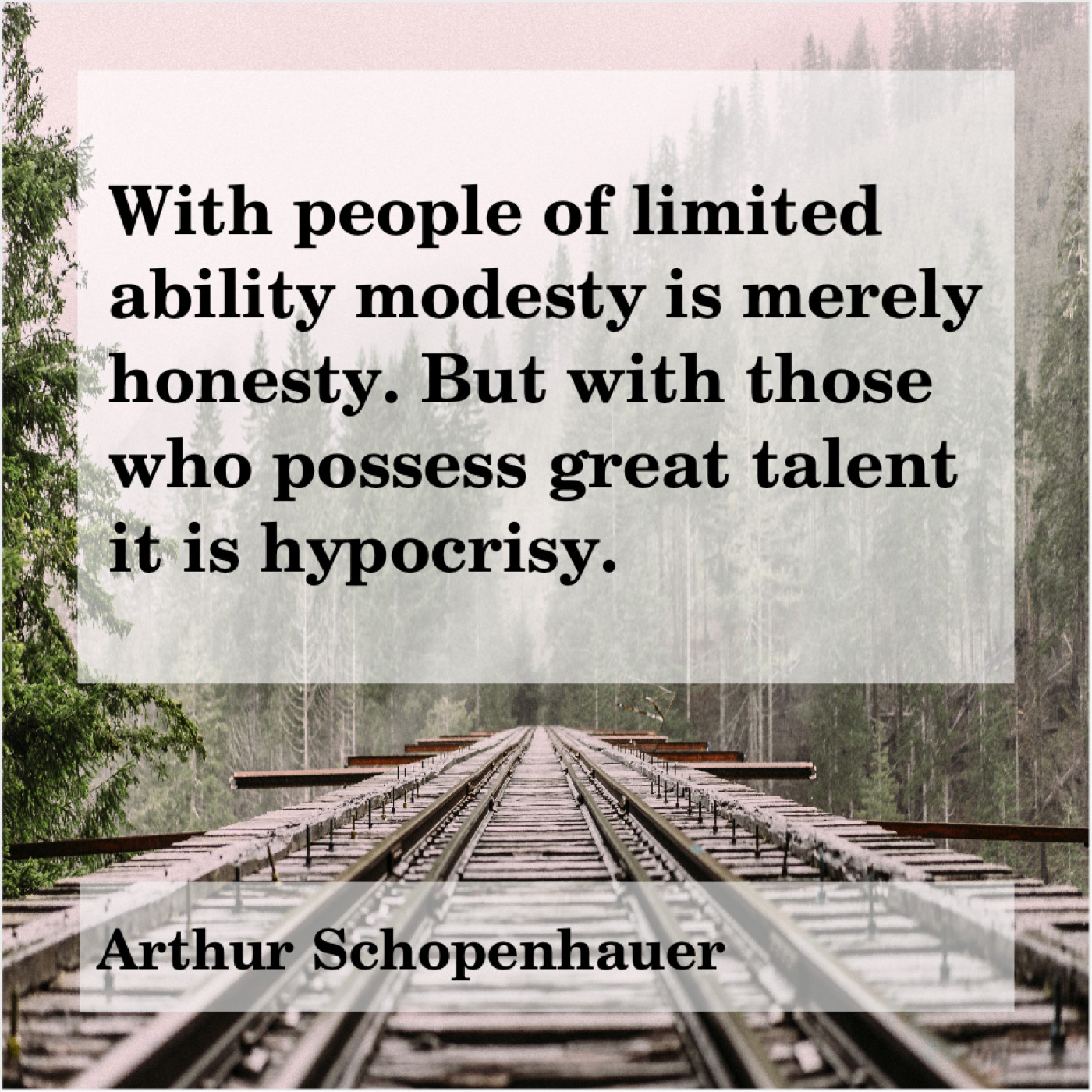 Arthur Schopenhauer Arthur Schopenhauer – With people of limited ability… June 8, 2019 admin “With people of limited ability modesty is merely honesty. But with those who possess great talent it is hypocrisy.”-Arthur Schopenhauer