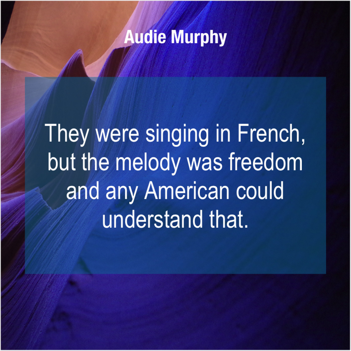 Audie Murphy Audie Murphy – They were singing in French… July 3, 2019 admin “They were singing in French, but the melody was freedom and any American could understand that.”-Audie Murphy