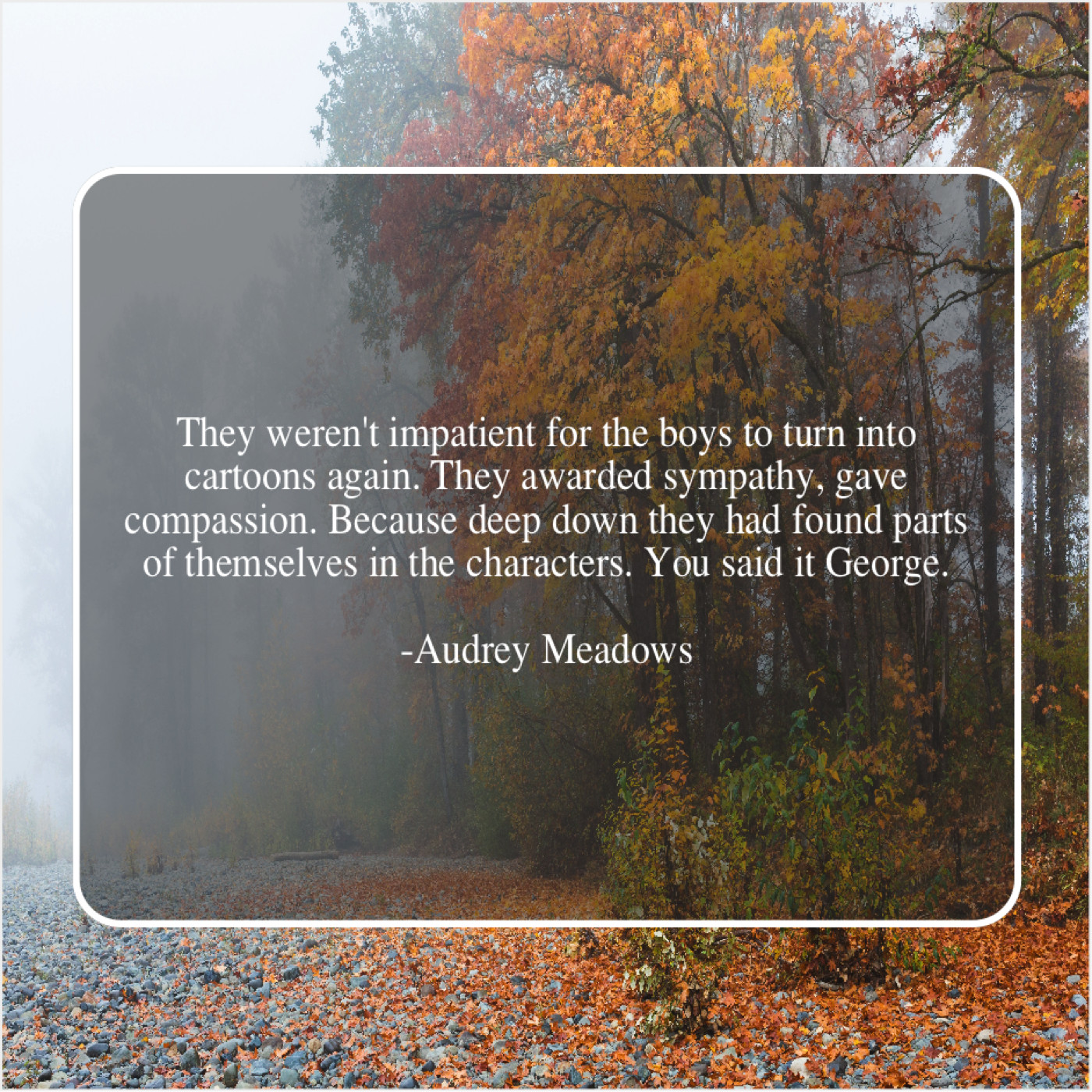 Audrey Meadows Audrey Meadows – They weren’t impatient for the… February 5, 2019 admin “They weren’t impatient for the boys to turn into cartoons again. They awarded sympathy, gave compassion. Because deep down they had found parts of themselves in the characters. You said it George.”-Audrey Meadows