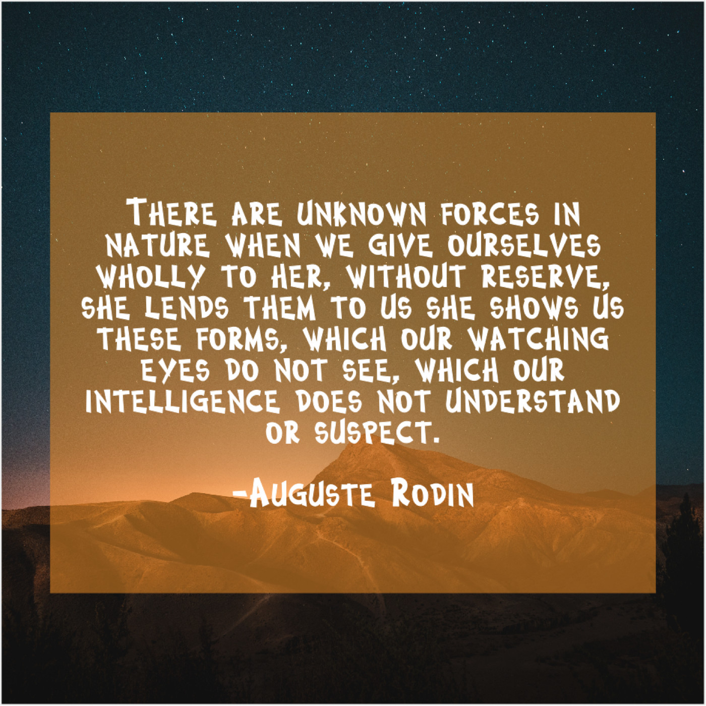 Auguste Rodin Auguste Rodin – There are unknown forces in… January 25, 2019 admin “There are unknown forces in nature when we give ourselves wholly to her, without reserve, she lends them to us she shows us these forms, which our watching eyes do not see, which our intelligence does not understand or suspect.”-Auguste Rodin
