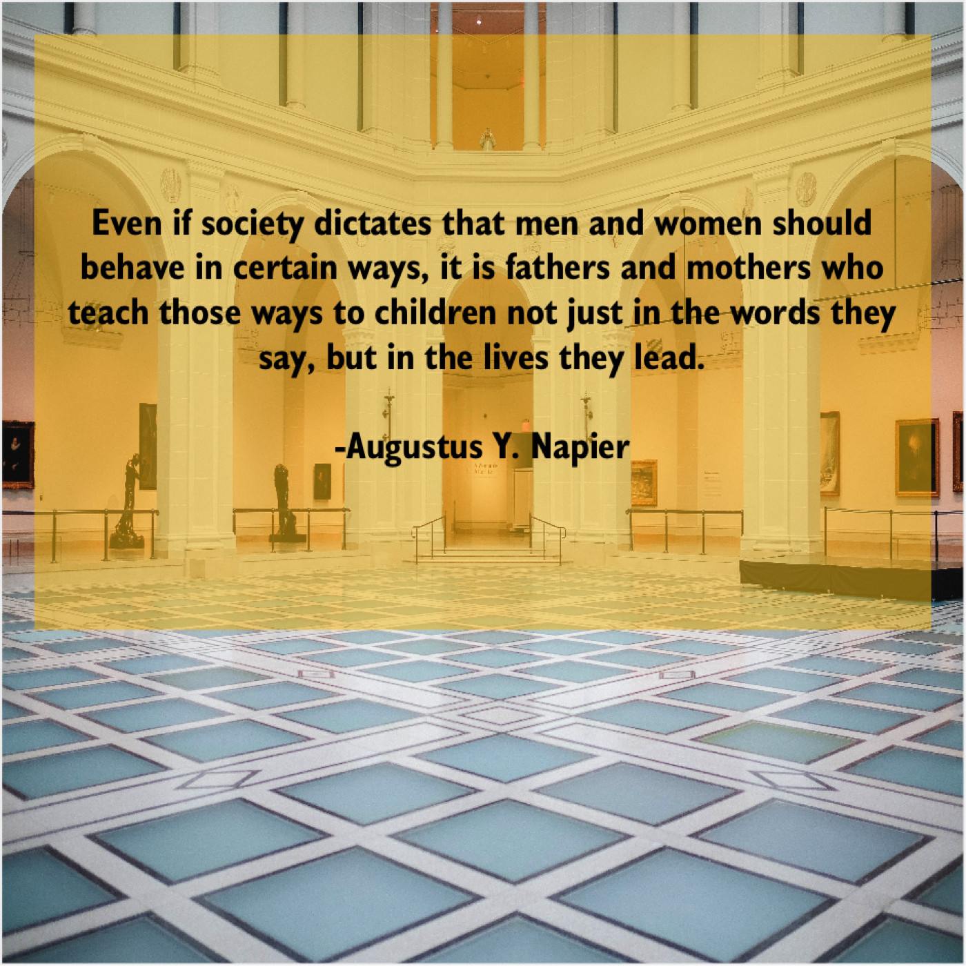 “Even if society dictates that men and women should behave in certain ways, it is fathers and mothers who teach those ways to children not just in the words they say, but in the lives they lead.”