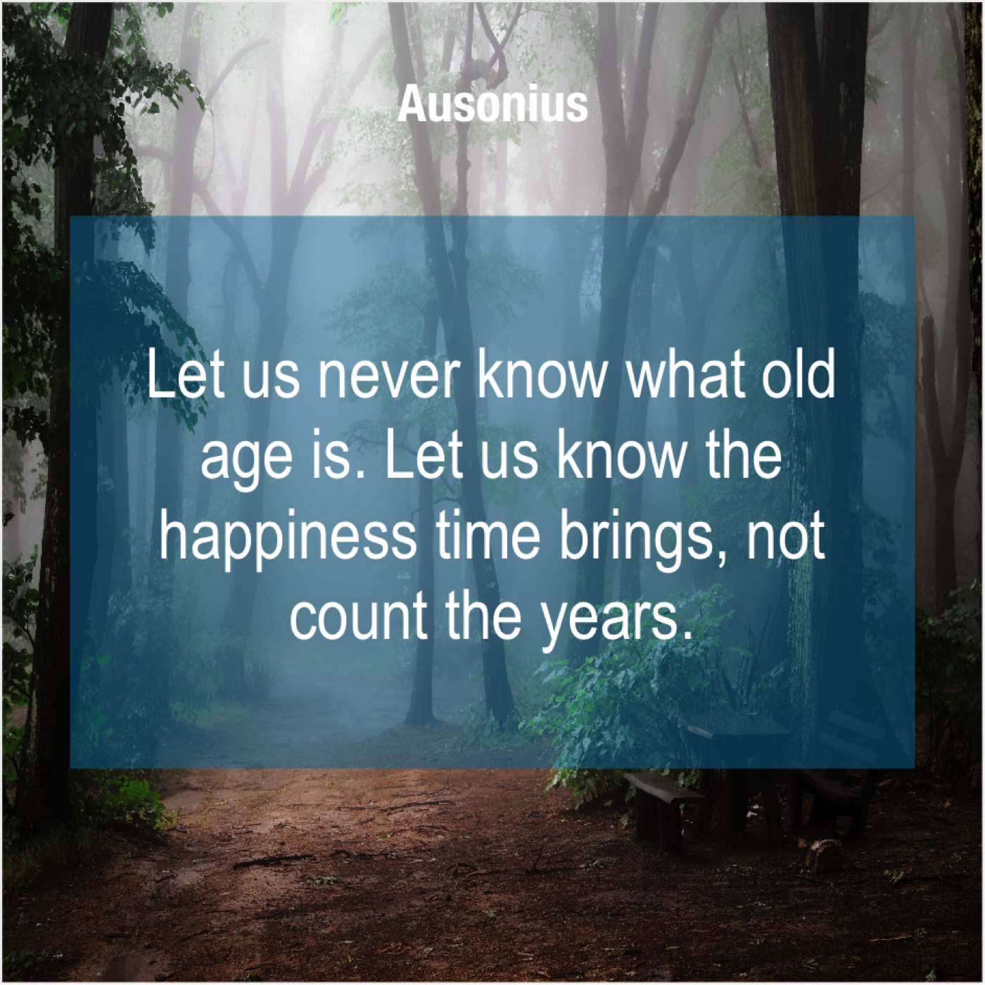 Ausonius Ausonius – Let us never know what… May 9, 2019 admin “Let us never know what old age is. Let us know the happiness time brings, not count the years.”-Ausonius