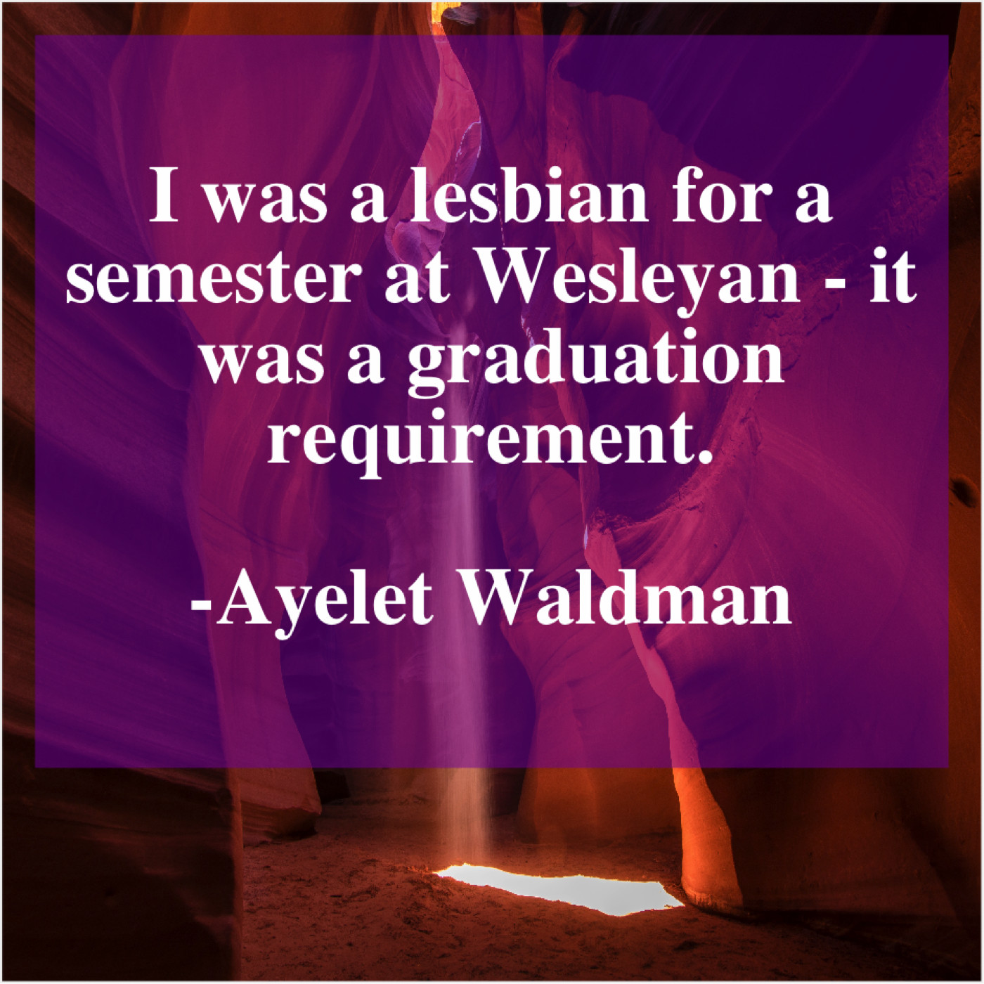Ayelet Waldman Ayelet Waldman – I was a lesbian for… June 30, 2019 admin “I was a lesbian for a semester at Wesleyan – it was a graduation requirement.”-Ayelet Waldman