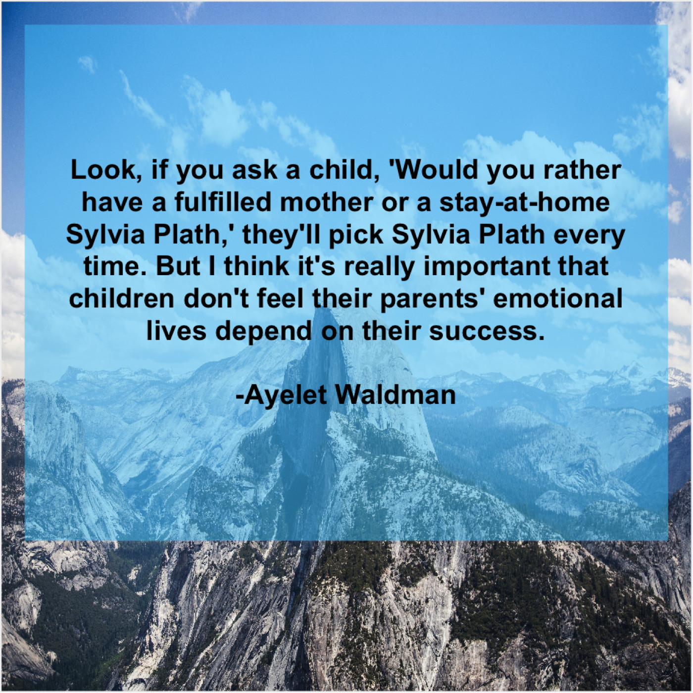“Look, if you ask a child, ‘Would you rather have a fulfilled mother or a stay-at-home Sylvia Plath,’ they’ll pick Sylvia Plath every time. But I think it’s really important that children don’t feel their parents’ emotional lives depend on their success.”