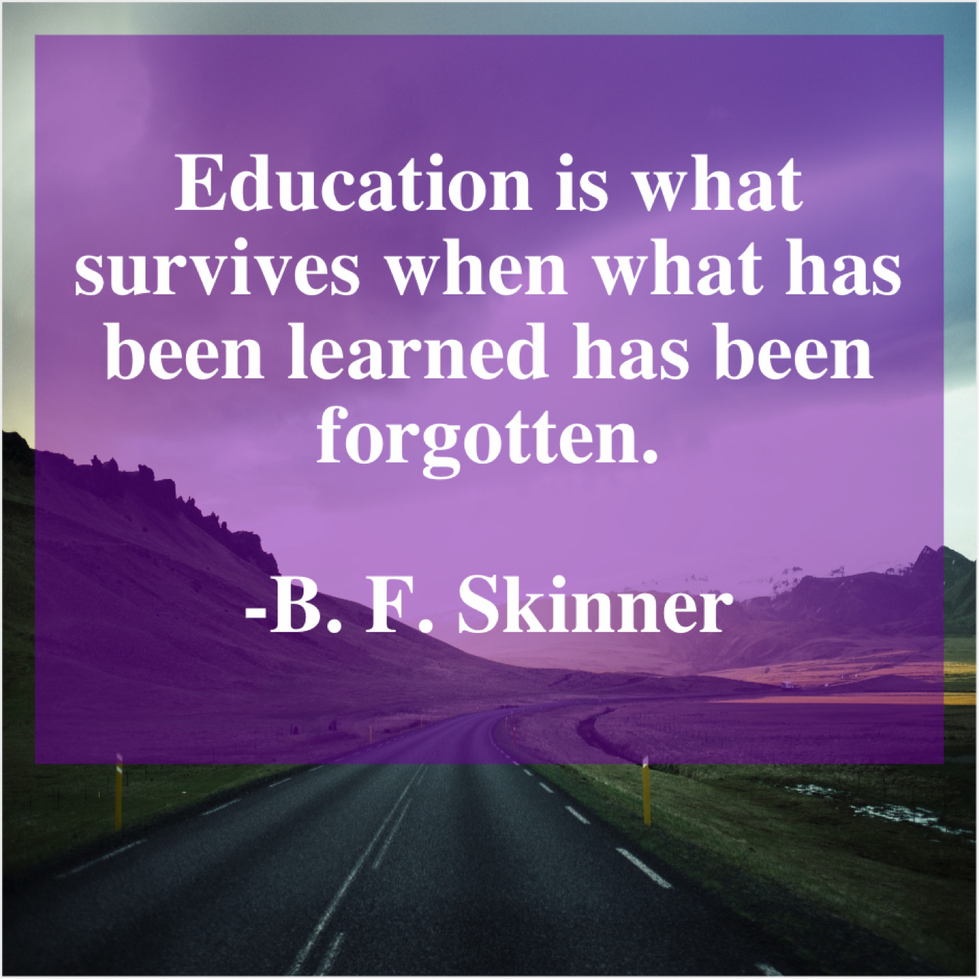 B. F. Skinner B. F. Skinner – Education is what survives when… March 10, 2019 admin “Education is what survives when what has been learned has been forgotten.”-B. F. Skinner