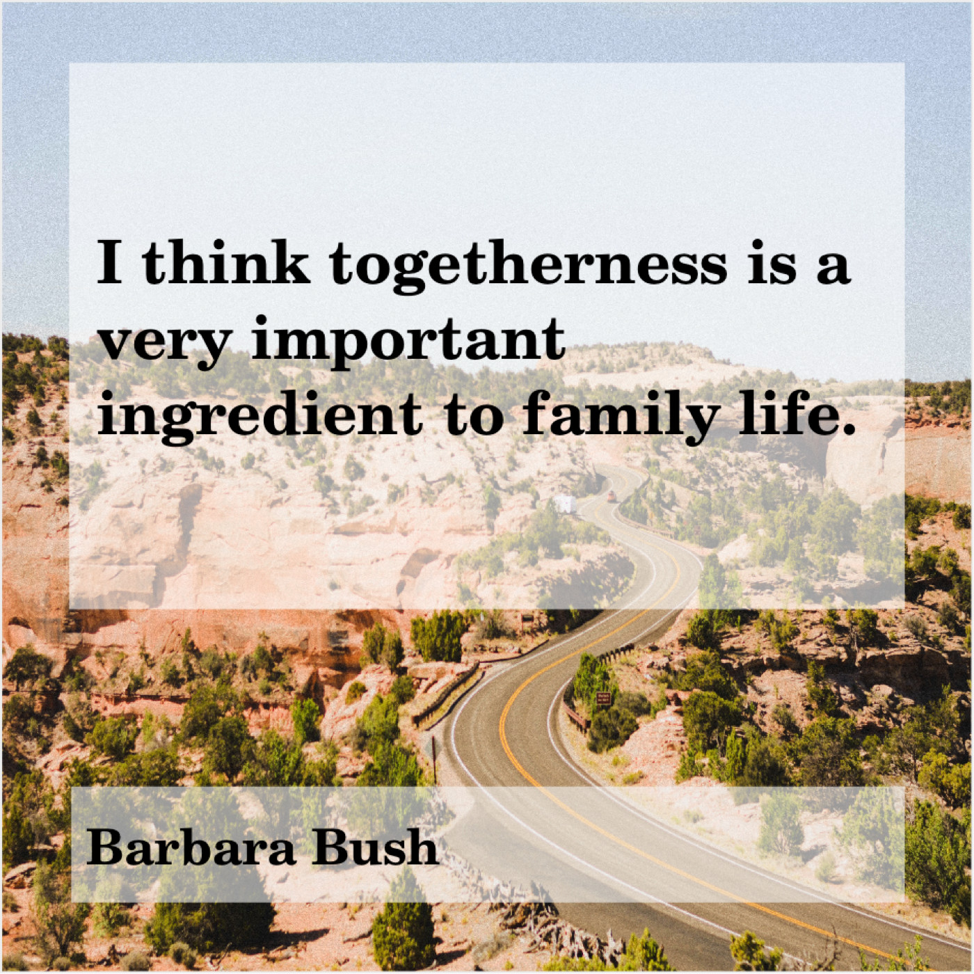 Barbara Bush Barbara Bush – I think togetherness is a… September 8, 2019 admin “I think togetherness is a very important ingredient to family life.”-Barbara Bush
