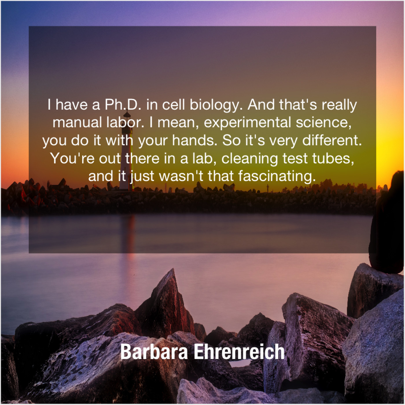“I have a Ph.D. in cell biology. And that’s really manual labor. I mean, experimental science, you do it with your hands. So it’s very different. You’re out there in a lab, cleaning test tubes, and it just wasn’t that fascinating.”