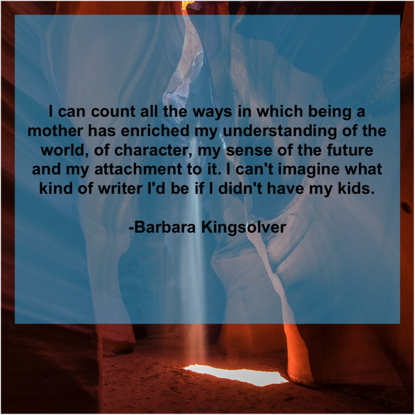 Barbara Kingsolver Barbara Kingsolver – I can count all the… September 2, 2019 admin “I can count all the ways in which being a mother has enriched my understanding of the world, of character, my sense of the future and my attachment to it. I can’t imagine what kind of writer I’d be if I didn’t have my kids.”-Barbara Kingsolver
