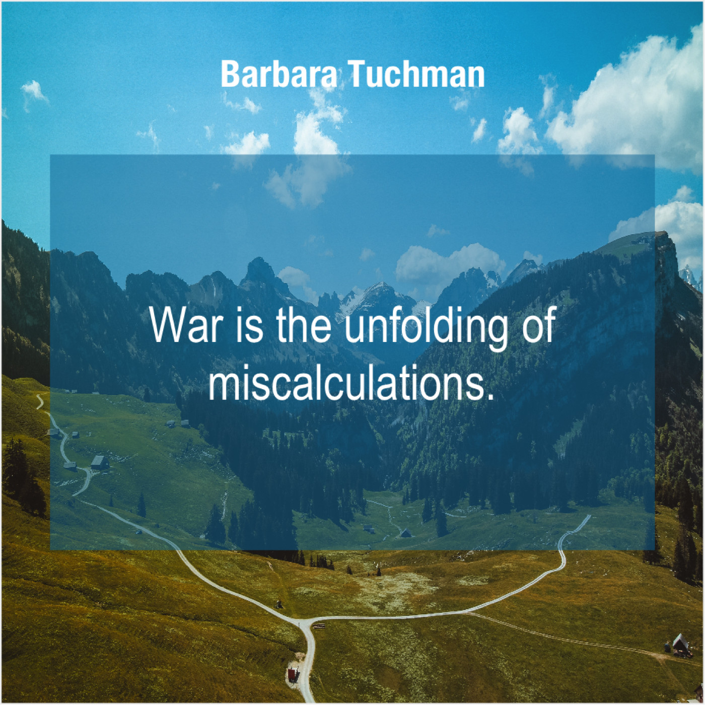 Barbara Tuchman Barbara Tuchman – War is the unfolding of… January 12, 2019 admin “War is the unfolding of miscalculations.”-Barbara Tuchman