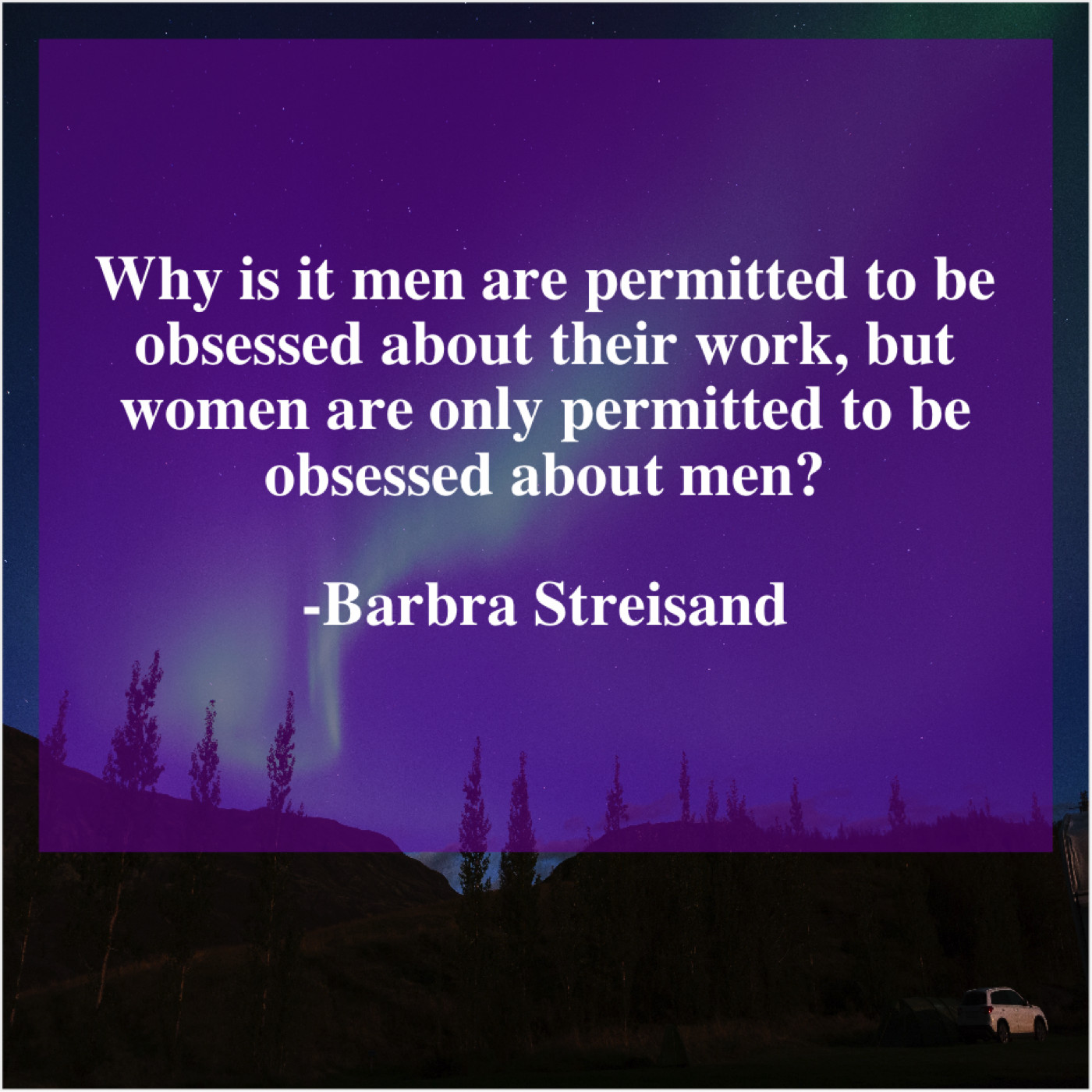 Barbra Streisand Barbra Streisand – Why is it men are… November 28, 2018 admin “Why is it men are permitted to be obsessed about their work, but women are only permitted to be obsessed about men?”-Barbra Streisand