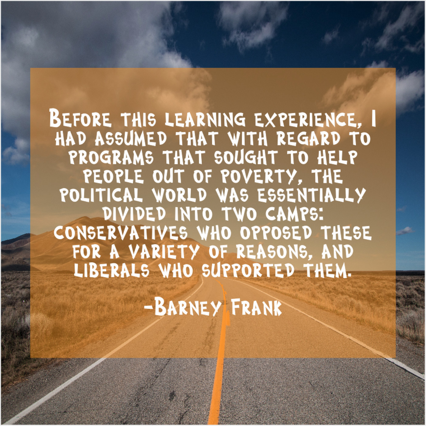 “Before this learning experience, I had assumed that with regard to programs that sought to help people out of poverty, the political world was essentially divided into two camps: conservatives who opposed these for a variety of reasons, and liberals who supported them.”
