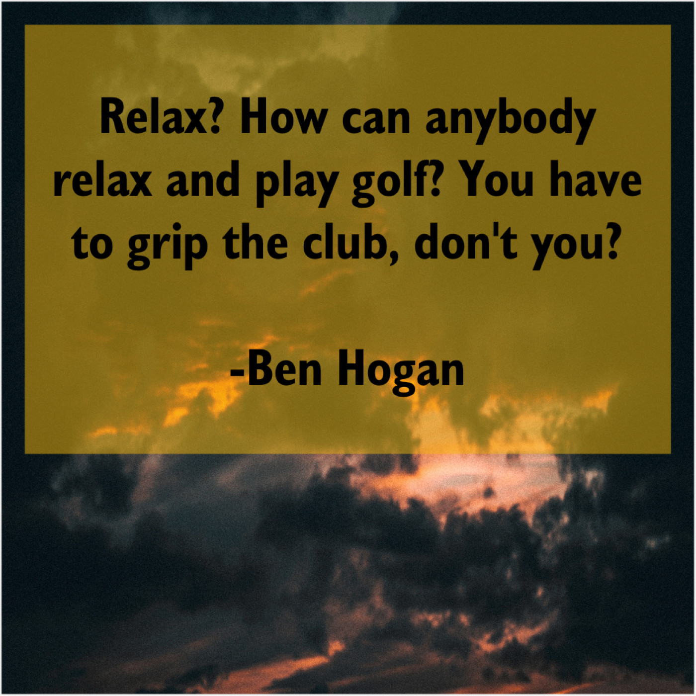 Ben Hogan Ben Hogan – Relax? How can anybody relax… July 23, 2019 admin “Relax? How can anybody relax and play golf? You have to grip the club, don’t you?”-Ben Hogan