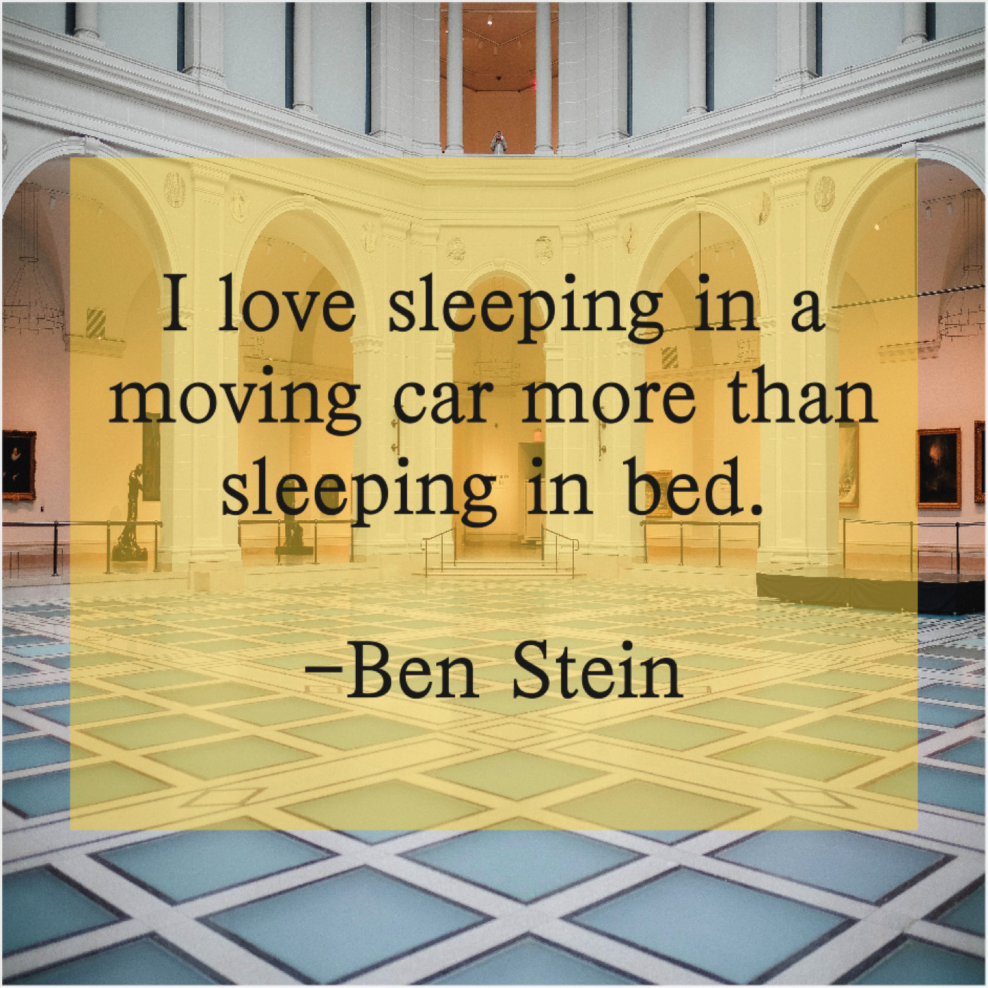 Ben Stein Ben Stein – I love sleeping in a… October 28, 2018 admin “I love sleeping in a moving car more than sleeping in bed.”-Ben Stein