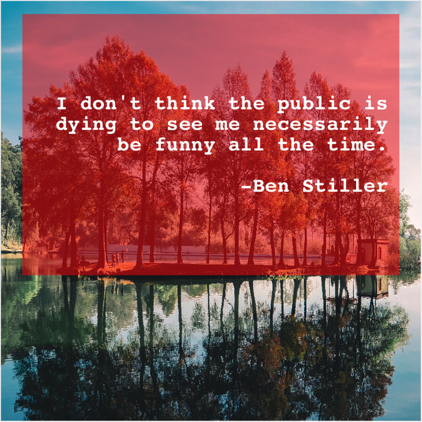 Ben Stiller Ben Stiller – I don’t think the public… July 5, 2019 admin “I don’t think the public is dying to see me necessarily be funny all the time.”-Ben Stiller