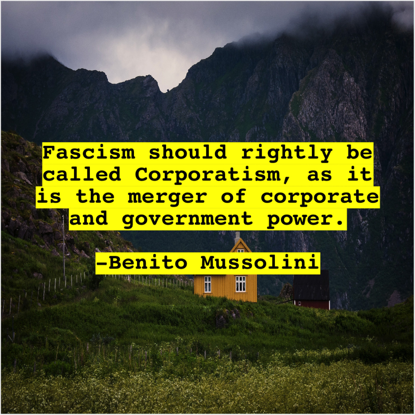 Benito Mussolini Benito Mussolini – Fascism should rightly be called… March 27, 2019 admin “Fascism should rightly be called Corporatism, as it is the merger of corporate and government power.”-Benito Mussolini