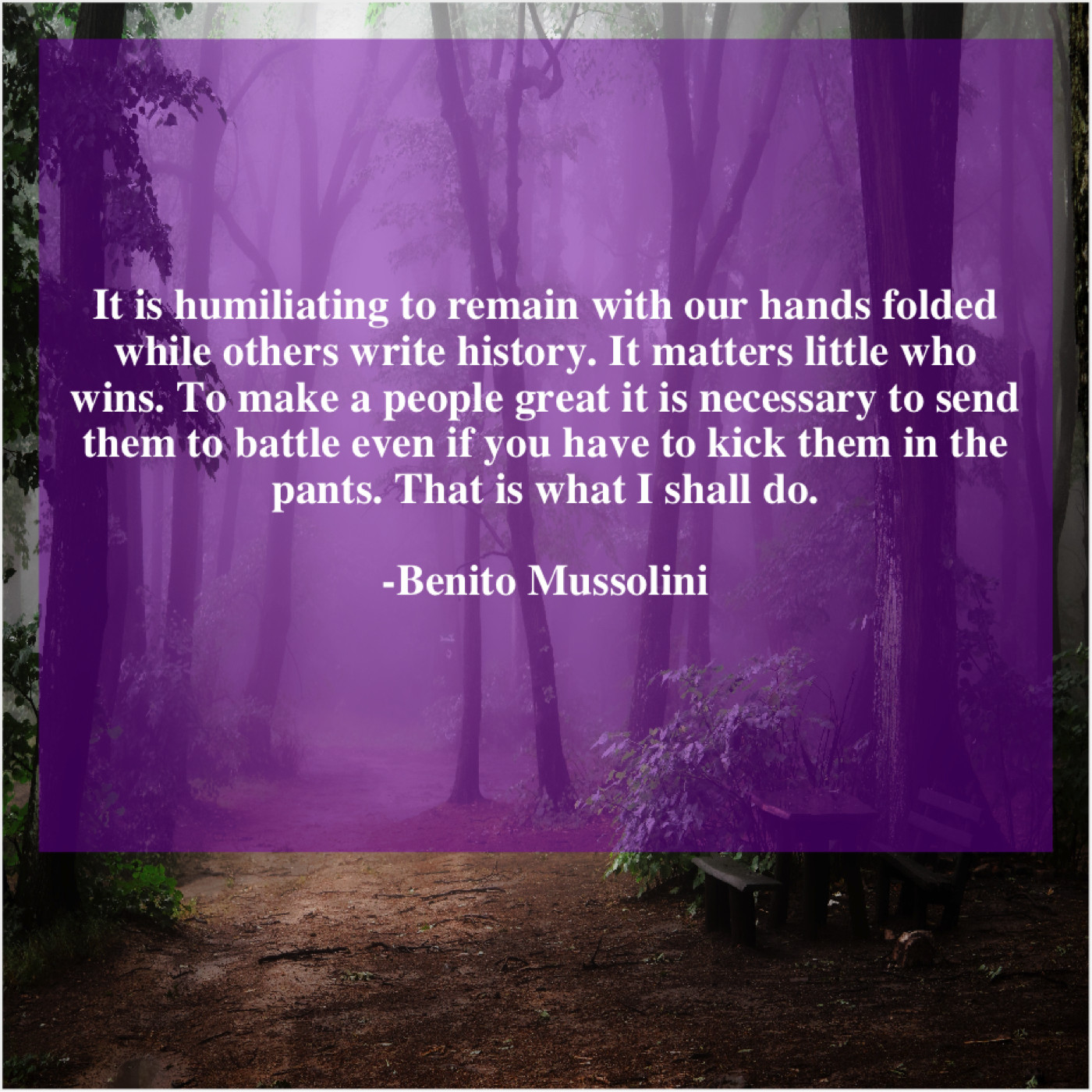 “It is humiliating to remain with our hands folded while others write history. It matters little who wins. To make a people great it is necessary to send them to battle even if you have to kick them in the pants. That is what I shall do.”