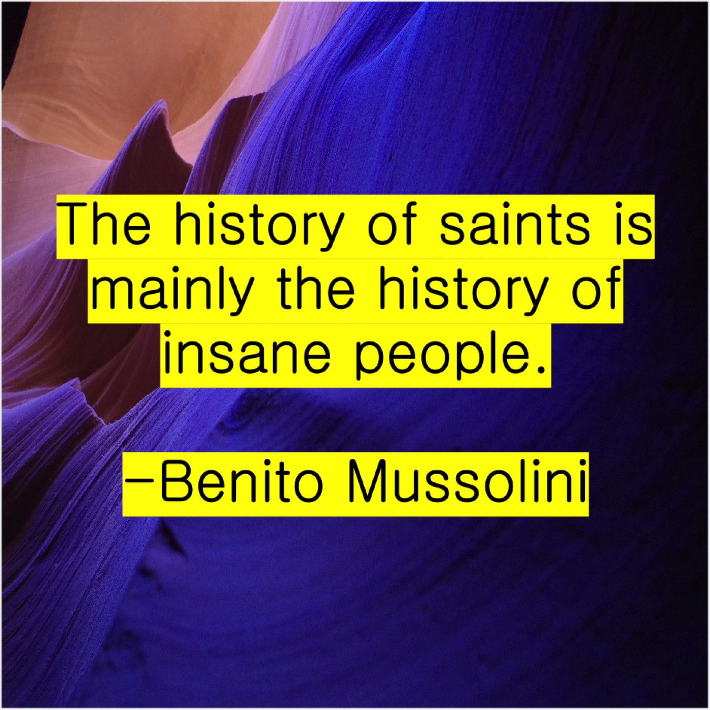 Benito Mussolini Benito Mussolini – The history of saints is… September 30, 2019 admin “The history of saints is mainly the history of insane people.”-Benito Mussolini
