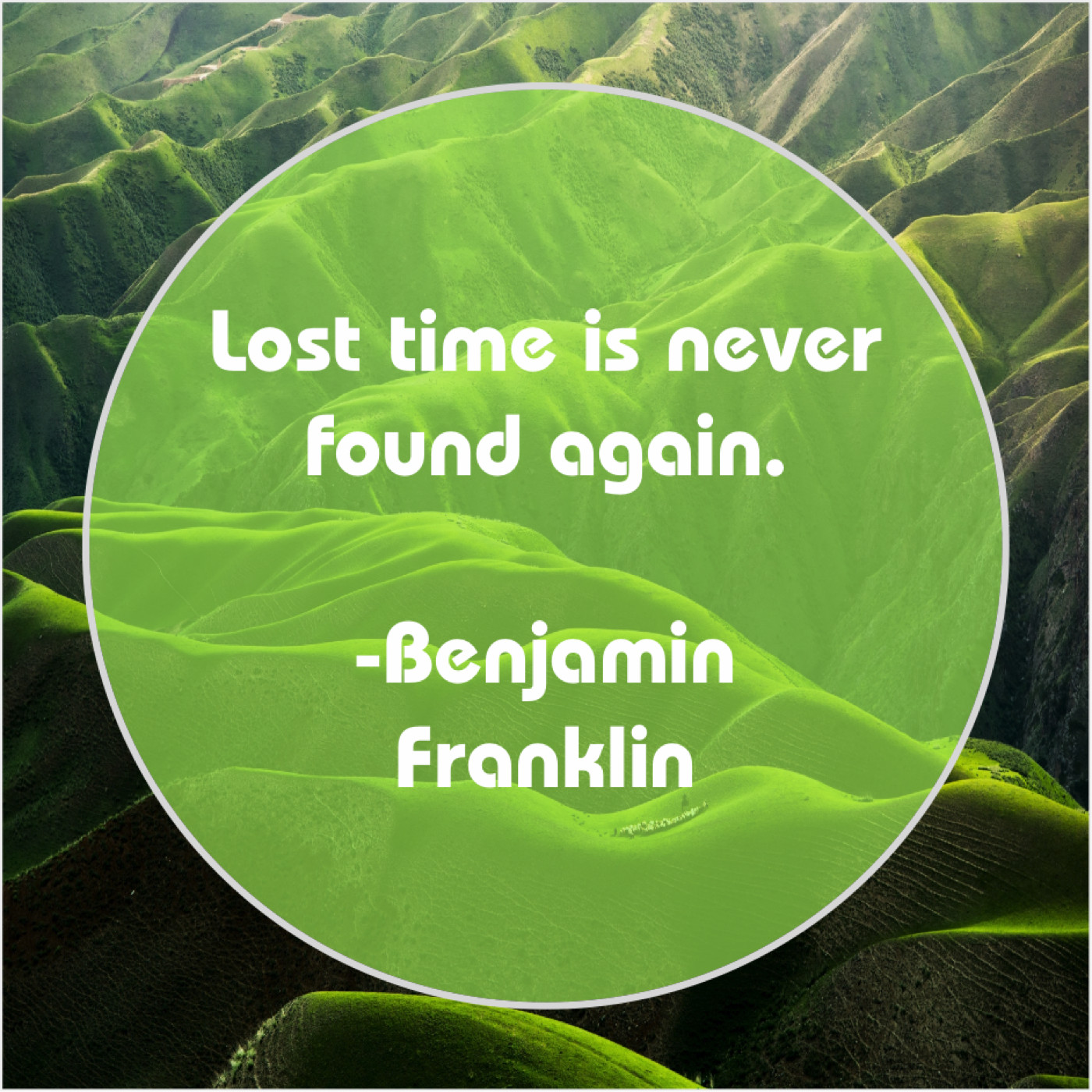 Benjamin Franklin Benjamin Franklin – Lost time is never found… March 27, 2019 admin “Lost time is never found again.”-Benjamin Franklin