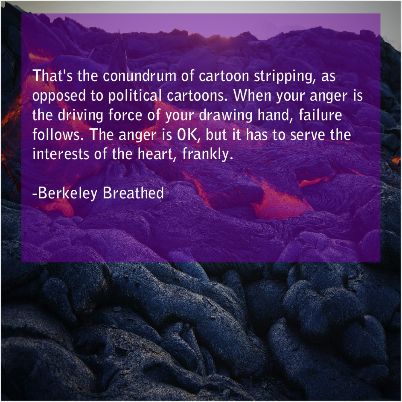 Berkeley Breathed Berkeley Breathed – That’s the conundrum of cartoon… April 26, 2019 admin “That’s the conundrum of cartoon stripping, as opposed to political cartoons. When your anger is the driving force of your drawing hand, failure follows. The anger is OK, but it has to serve the interests of the heart, frankly.”-Berkeley Breathed