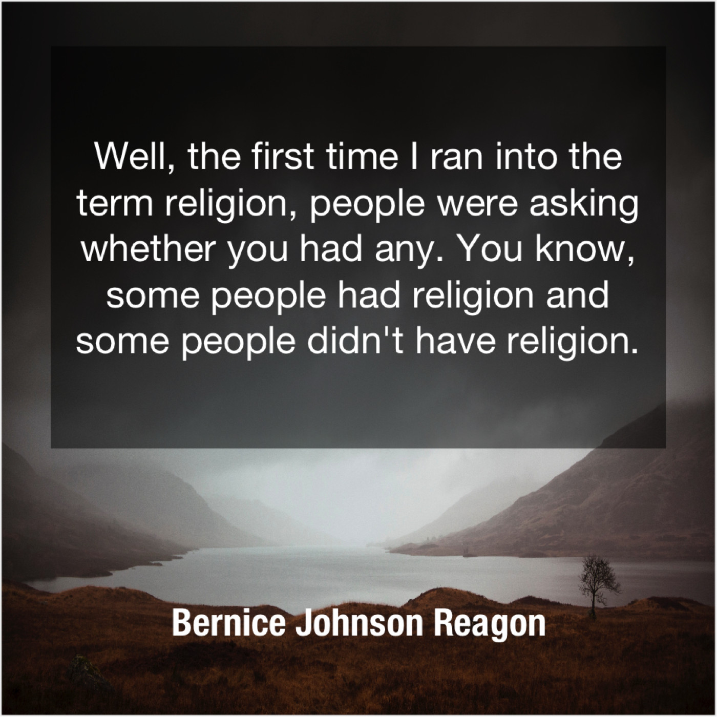 Bernice Johnson Reagon Bernice Johnson Reagon – Well, the first time I… December 29, 2018 admin “Well, the first time I ran into the term religion, people were asking whether you had any. You know, some people had religion and some people didn’t have religion.”-Bernice Johnson Reagon