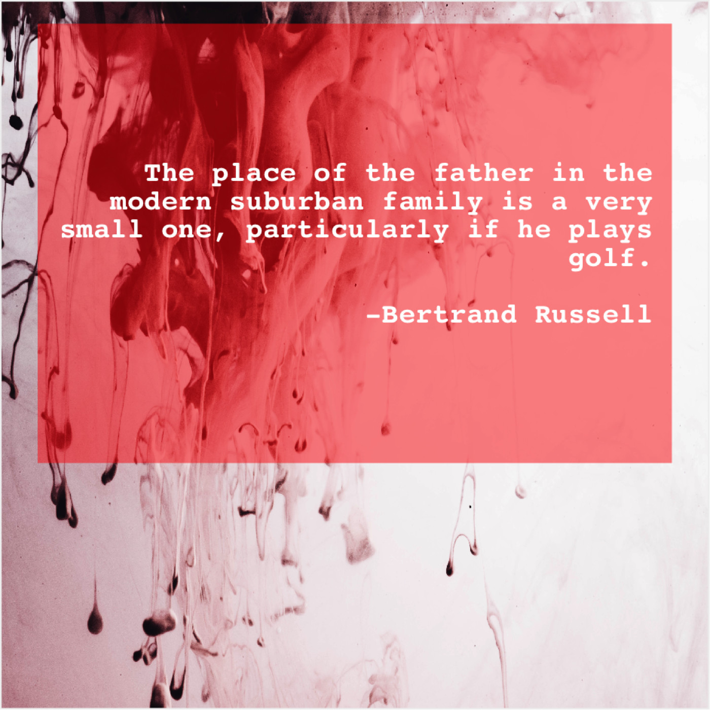 Bertrand Russell Bertrand Russell – The place of the father… September 10, 2019 admin “The place of the father in the modern suburban family is a very small one, particularly if he plays golf.”-Bertrand Russell