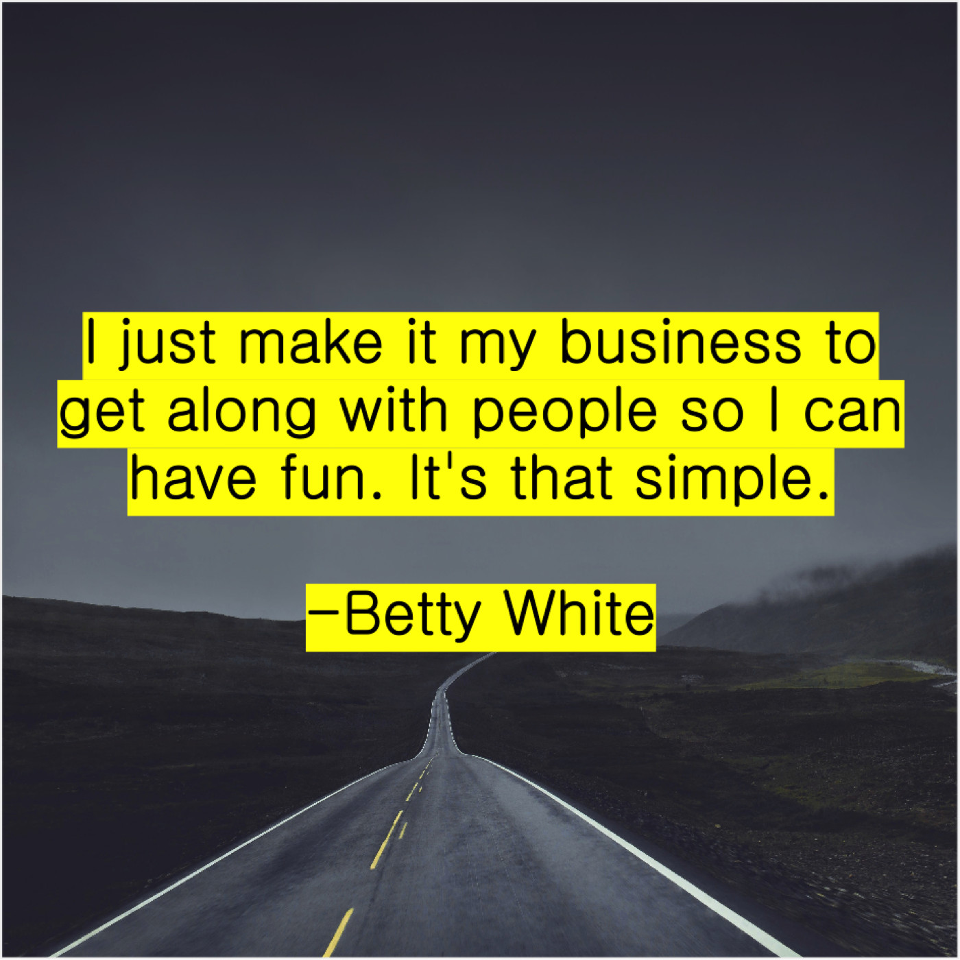 Betty White Betty White – I just make it my… August 13, 2019 admin “I just make it my business to get along with people so I can have fun. It’s that simple.”-Betty White