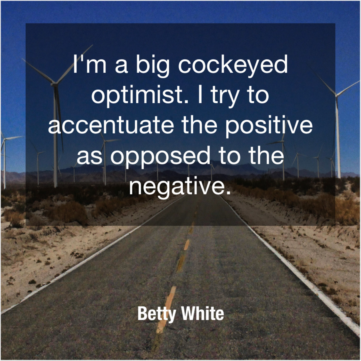 Betty White Betty White – I’m a big cockeyed optimist… March 14, 2019 admin “I’m a big cockeyed optimist. I try to accentuate the positive as opposed to the negative.”-Betty White