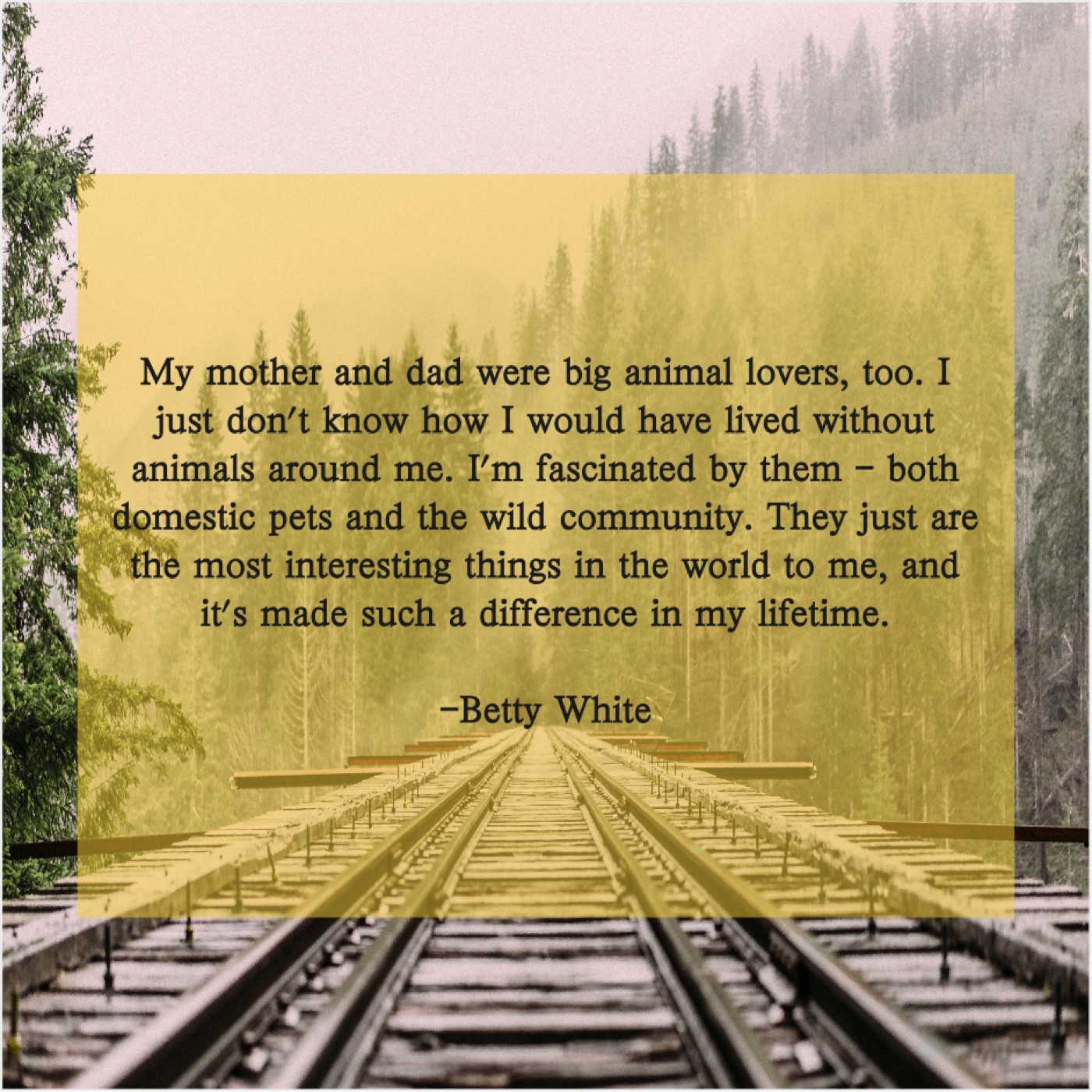 “My mother and dad were big animal lovers, too. I just don’t know how I would have lived without animals around me. I’m fascinated by them – both domestic pets and the wild community. They just are the most interesting things in the world to me, and it’s made such a difference in my lifetime.”