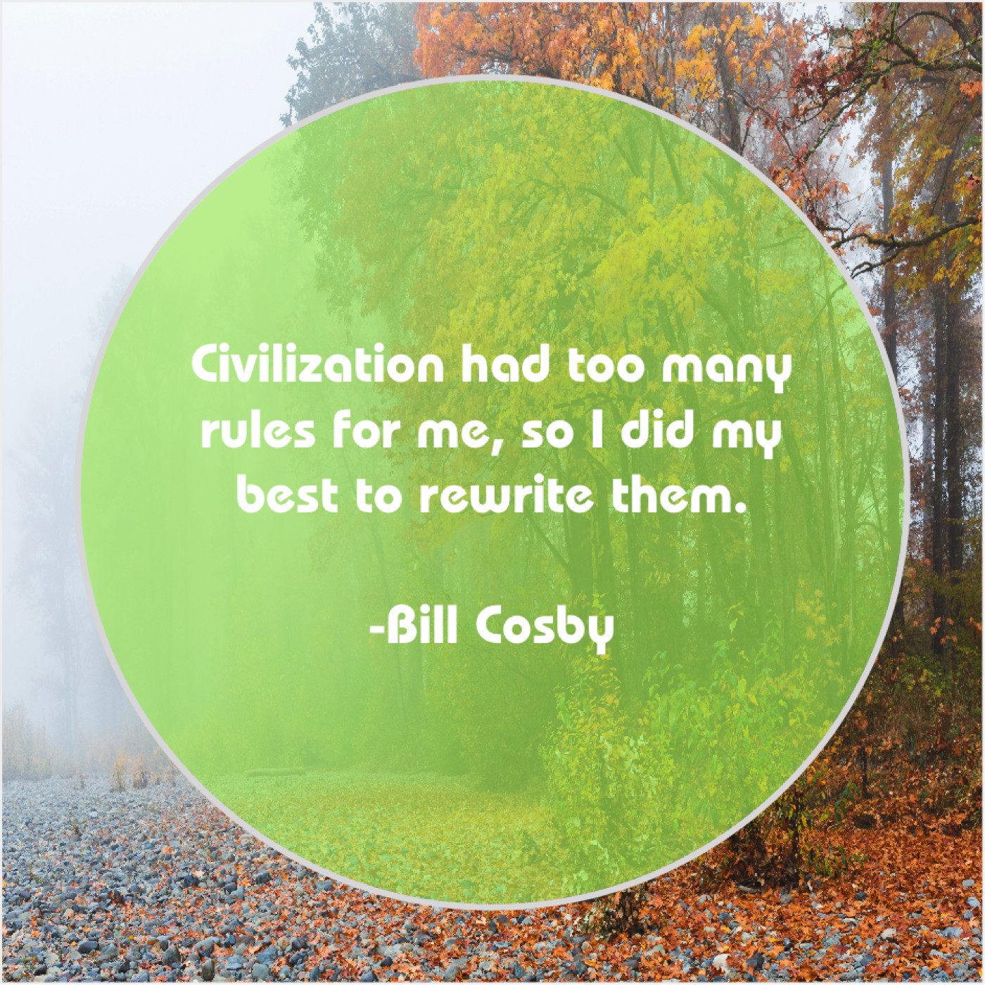 Bill Cosby Bill Cosby – Civilization had too many rules… July 2, 2019 admin “Civilization had too many rules for me, so I did my best to rewrite them.”-Bill Cosby