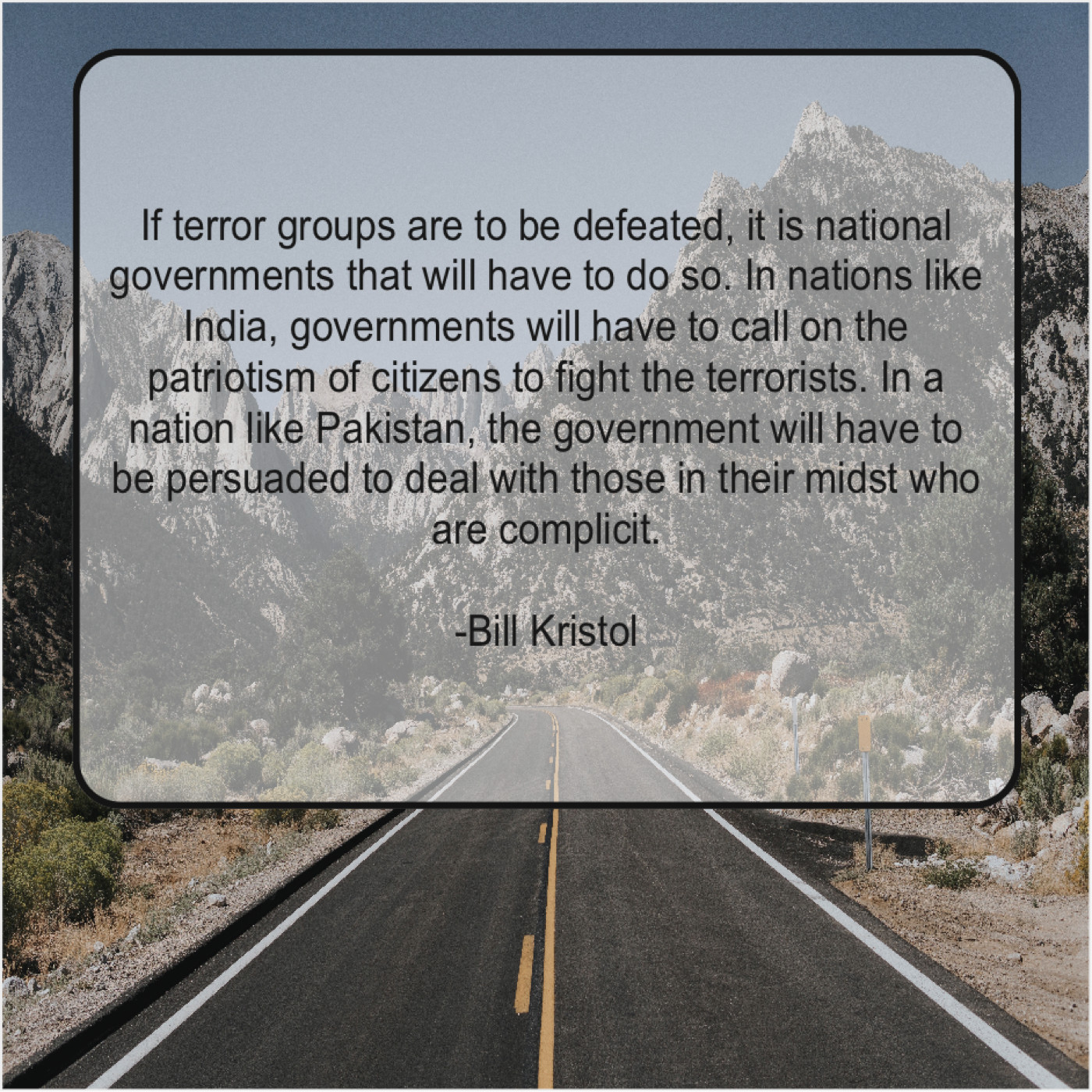 “If terror groups are to be defeated, it is national governments that will have to do so. In nations like India, governments will have to call on the patriotism of citizens to fight the terrorists. In a nation like Pakistan, the government will have to be persuaded to deal with those in their midst who are complicit.”