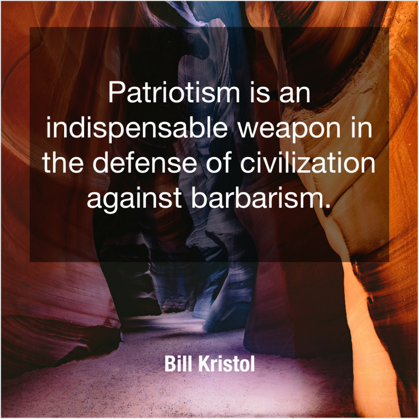 Bill Kristol Bill Kristol – Patriotism is an indispensable weapon… September 26, 2019 admin “Patriotism is an indispensable weapon in the defense of civilization against barbarism.”-Bill Kristol